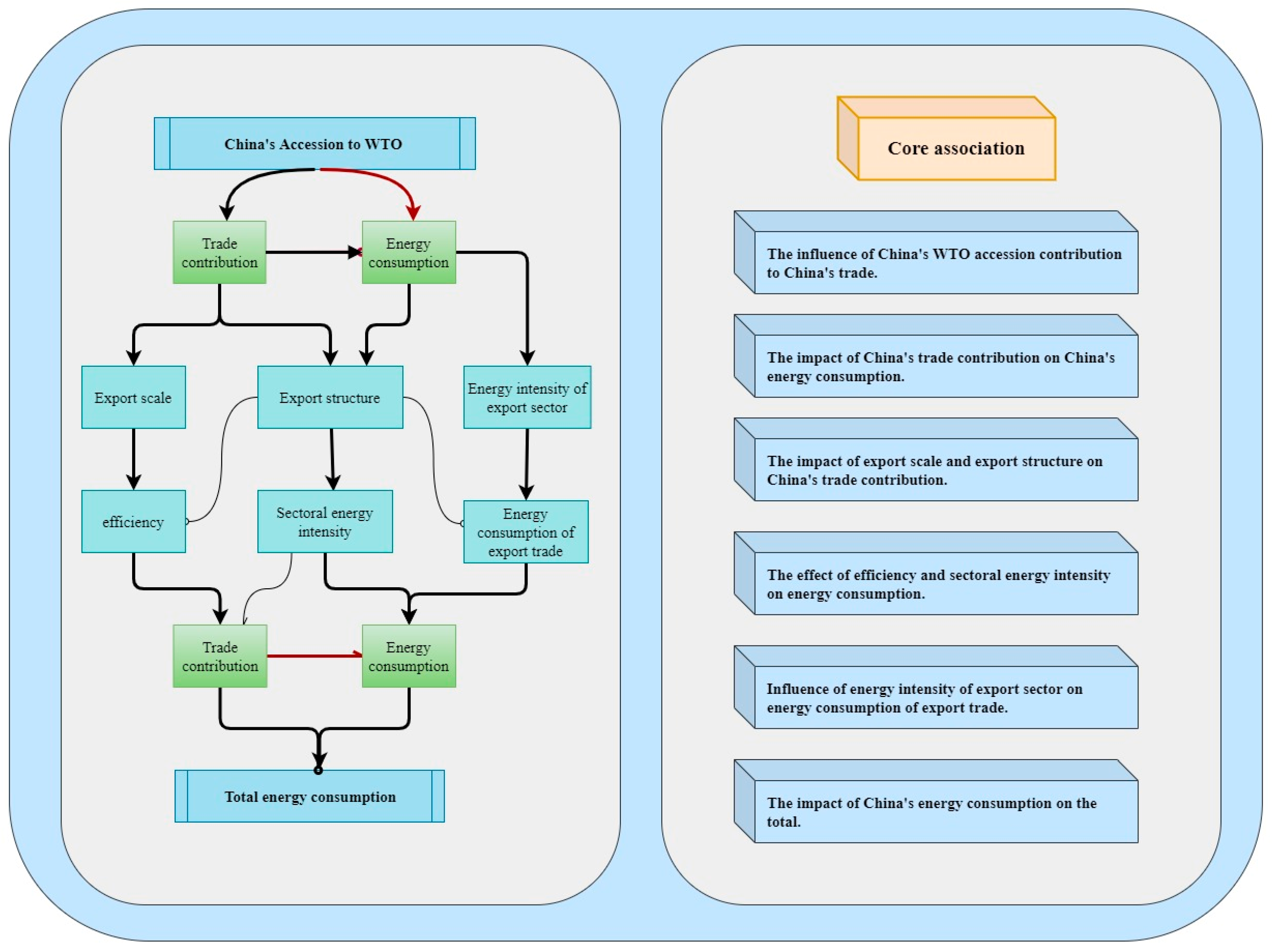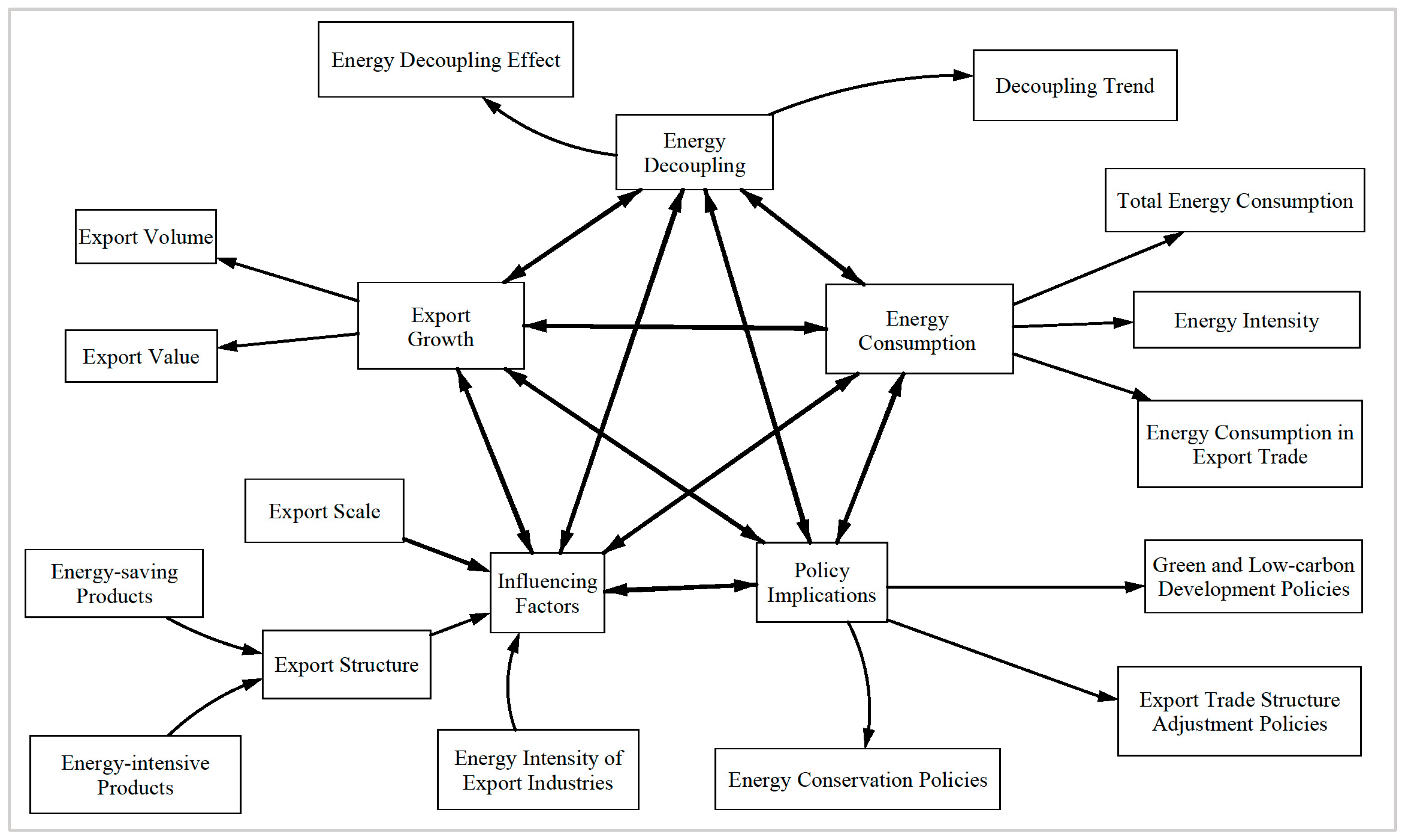- Advanced Analytical Framework. Integrating noncompetitive input–output models, system dynamics, and LMDI decomposition, this research reveals the complex relationship between export growth and energy consumption. It also explores how transitions to energy-efficient and high-tech industries reshape energy use patterns, delivering insights that surpass conventional analyses.