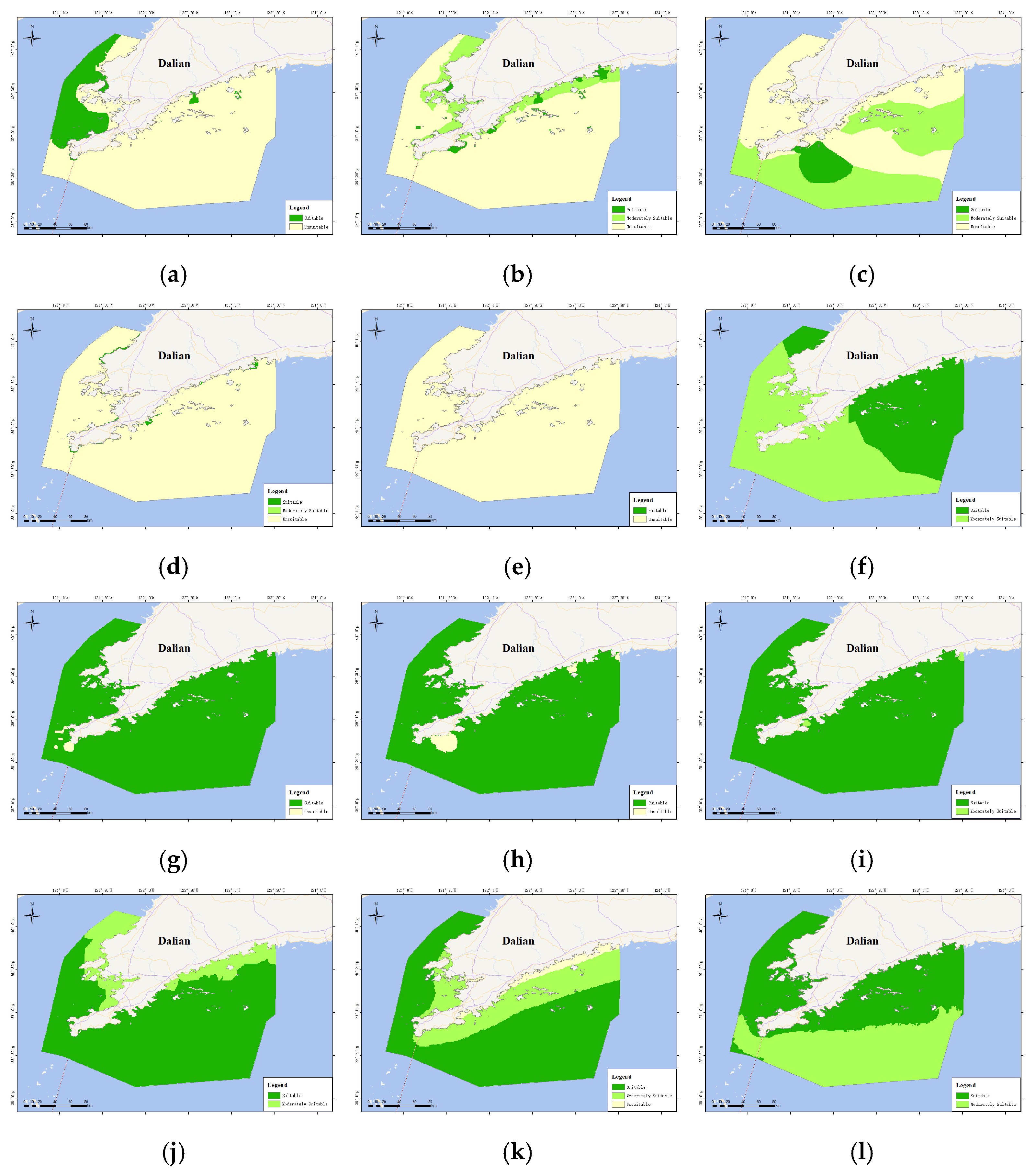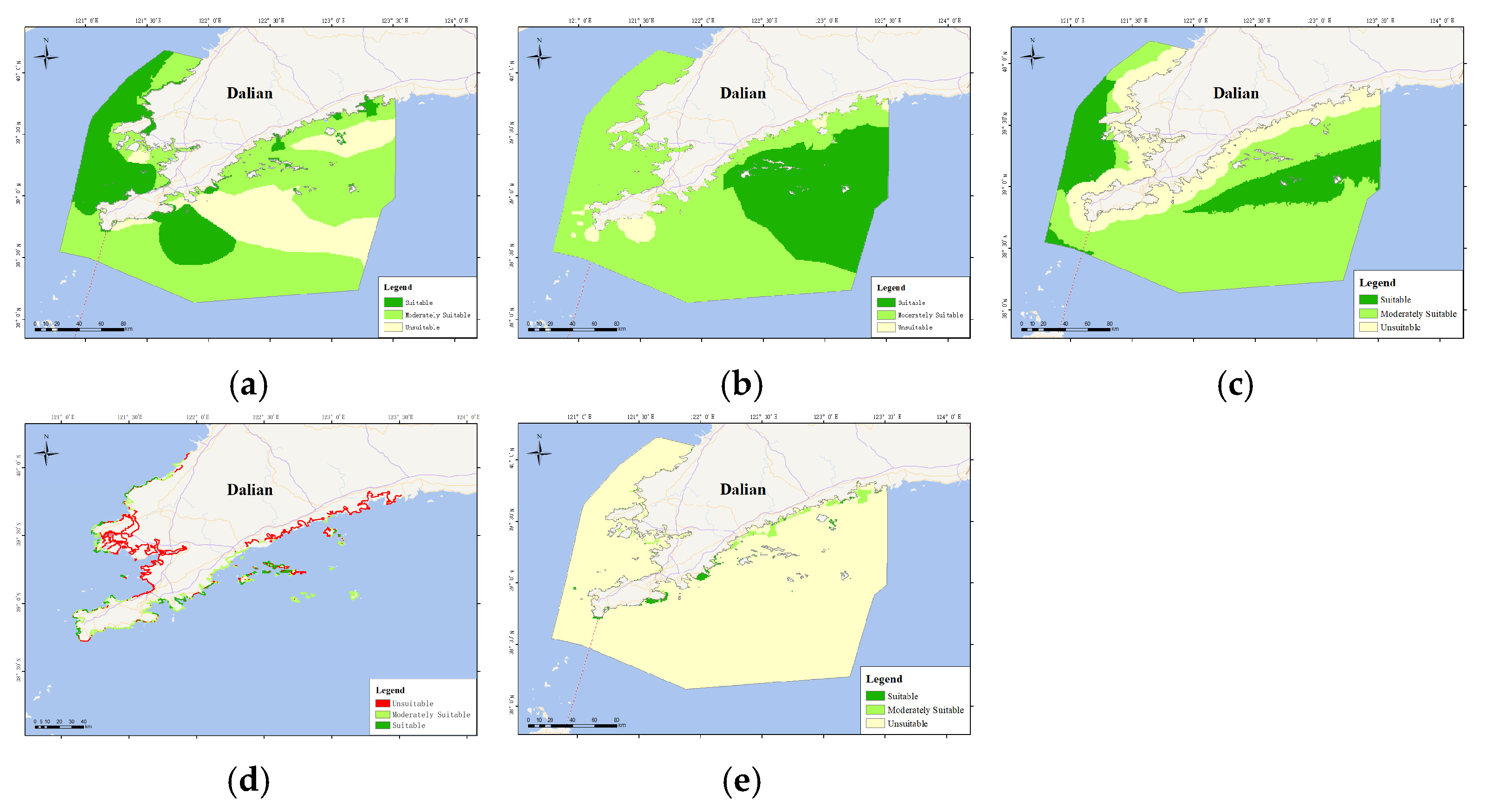 3.2.3. Individual Marine Spatial Suitability Evaluation