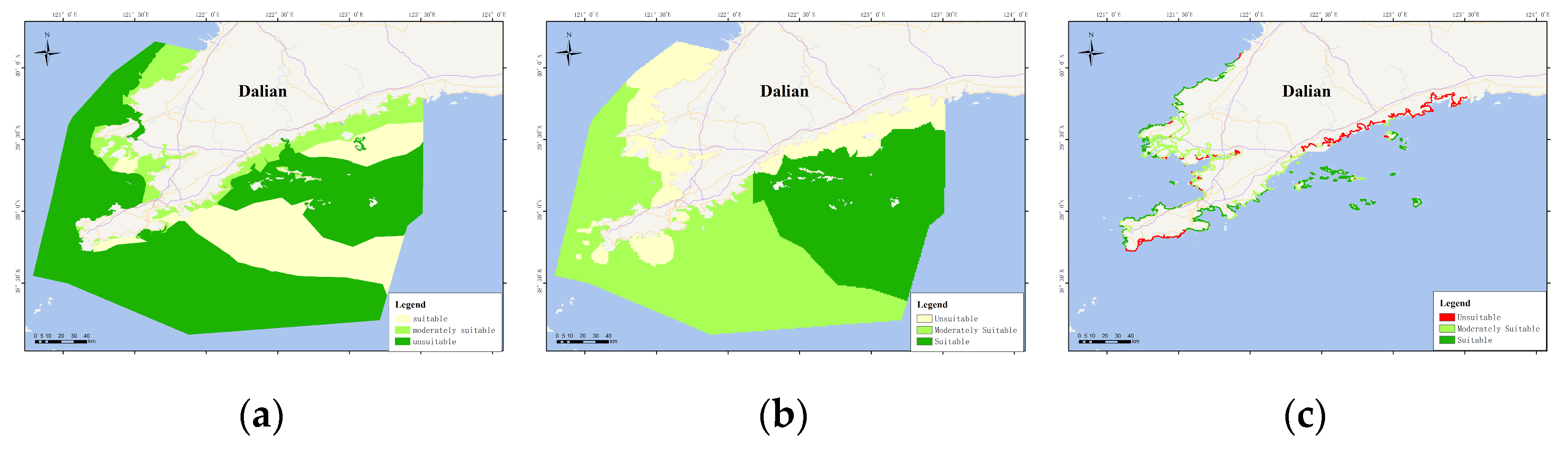 - Wei, B.Q.; Li, Y.; Suo, A.N.; Zhang, Z.F.; Xu, Y.; Chen, Y.L. Spatial suitability evaluation of coastal zone, and zoning optimisation in Ningbo, China. Ocean Coast. Manag. 2021, 204, 105507. [Google Scholar] [CrossRef]