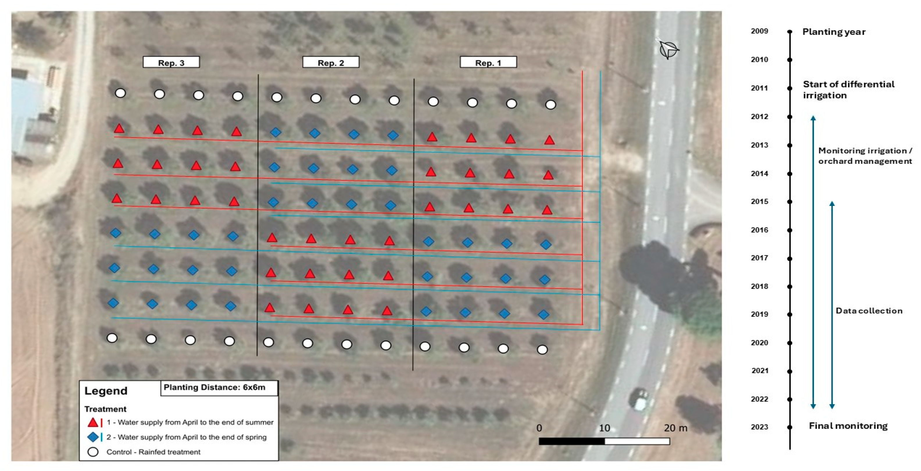- Soler, M.; Laboreo, P. Requeriments hídrics en Noguer. In Estrategies de Reg Deficitari; Oficina del Regant, DARP: Santa Coloma de Cervelló, Spain, 2023; p. 30. [Google Scholar]