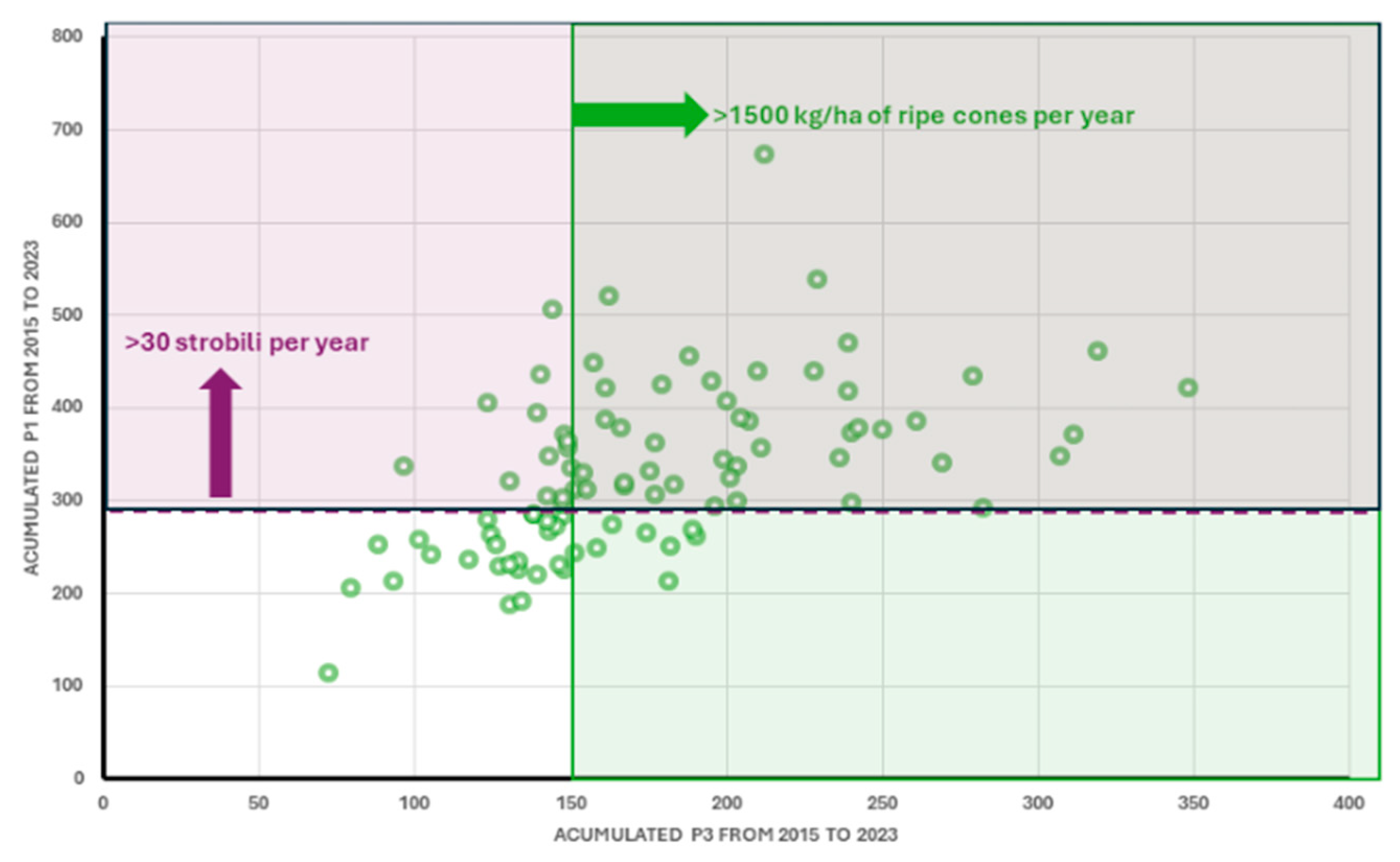 - 41 Loewe-Muñoz, V.; Balzarini, M.; Álvarez-Contreras, A.; Delbard-Rodríguez, C.; Navarro-Cerrillo, R. Fruit productivity of stone pine (Pinus pinea L.) along a climatic gradient in Chile. Agric. For. Meteorol. 2016, 223, 203–216. [Google Scholar] [CrossRef]