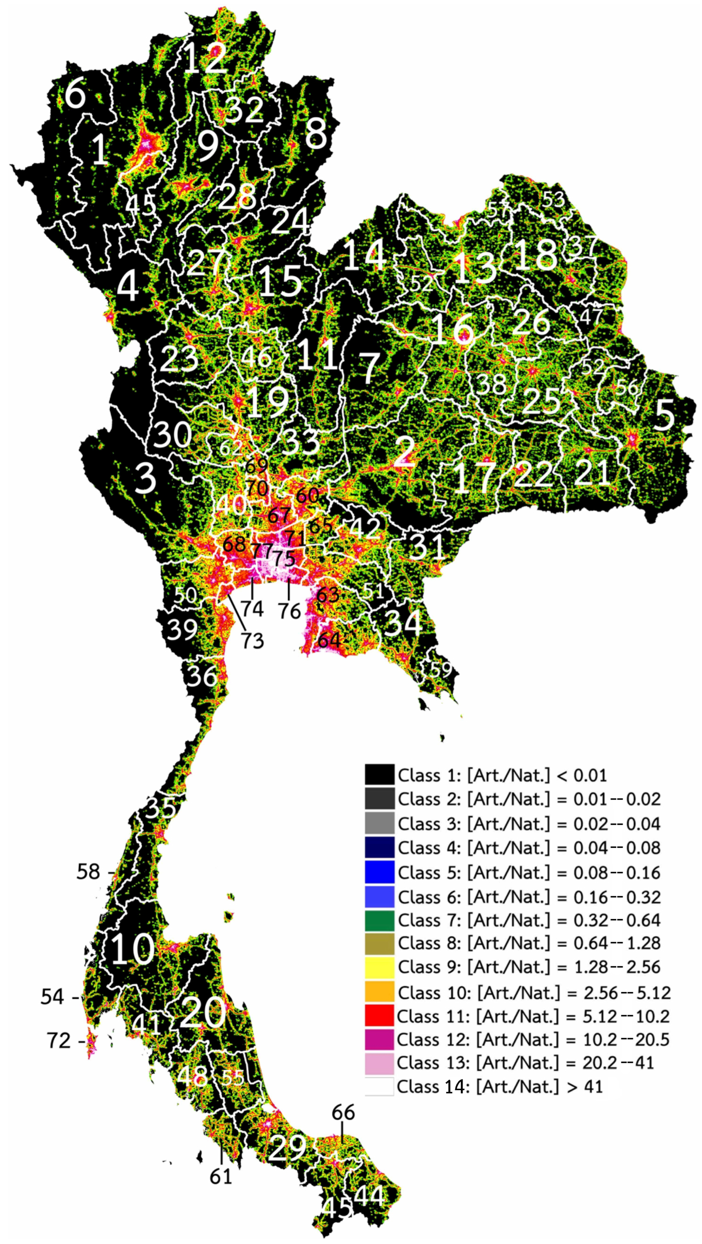 APA StyleSurina, F., Changruenngam, T., Waikeaw, J., Nanglae, S., Poshyachinda, S., Soonthornthum, B., & Bode, M. F. (2025). The First Dark-Sky Map of Thailand: International Comparisons and Factors Affecting the Rate of Change. Sustainability, 17(21), 9856. https://doi.org/10.3390/su17219856