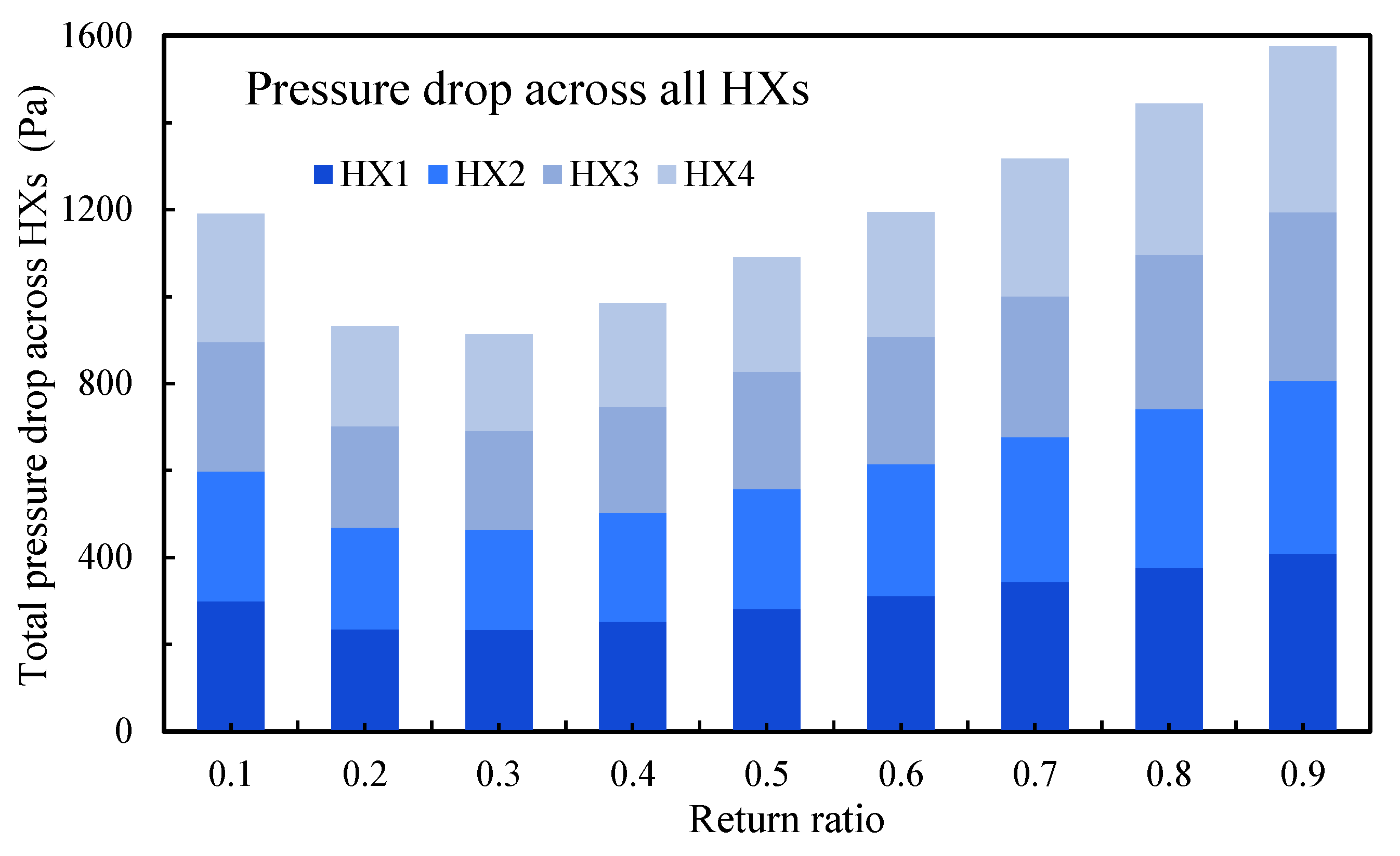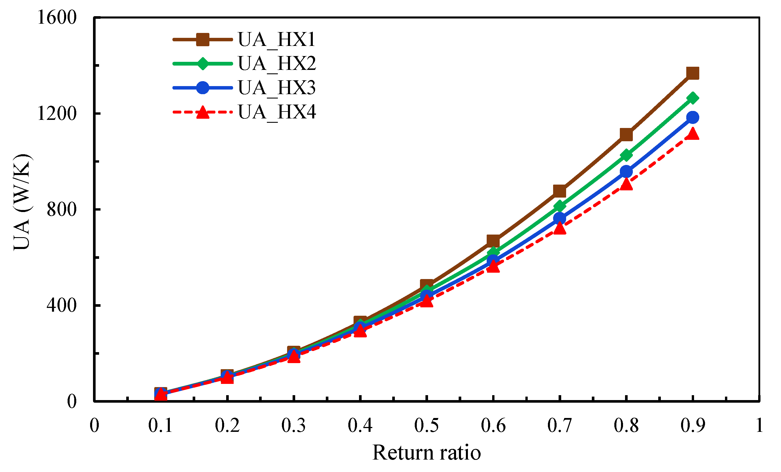 3.2. Impact of the Return Ratio on the Size of the Heat Exchangers