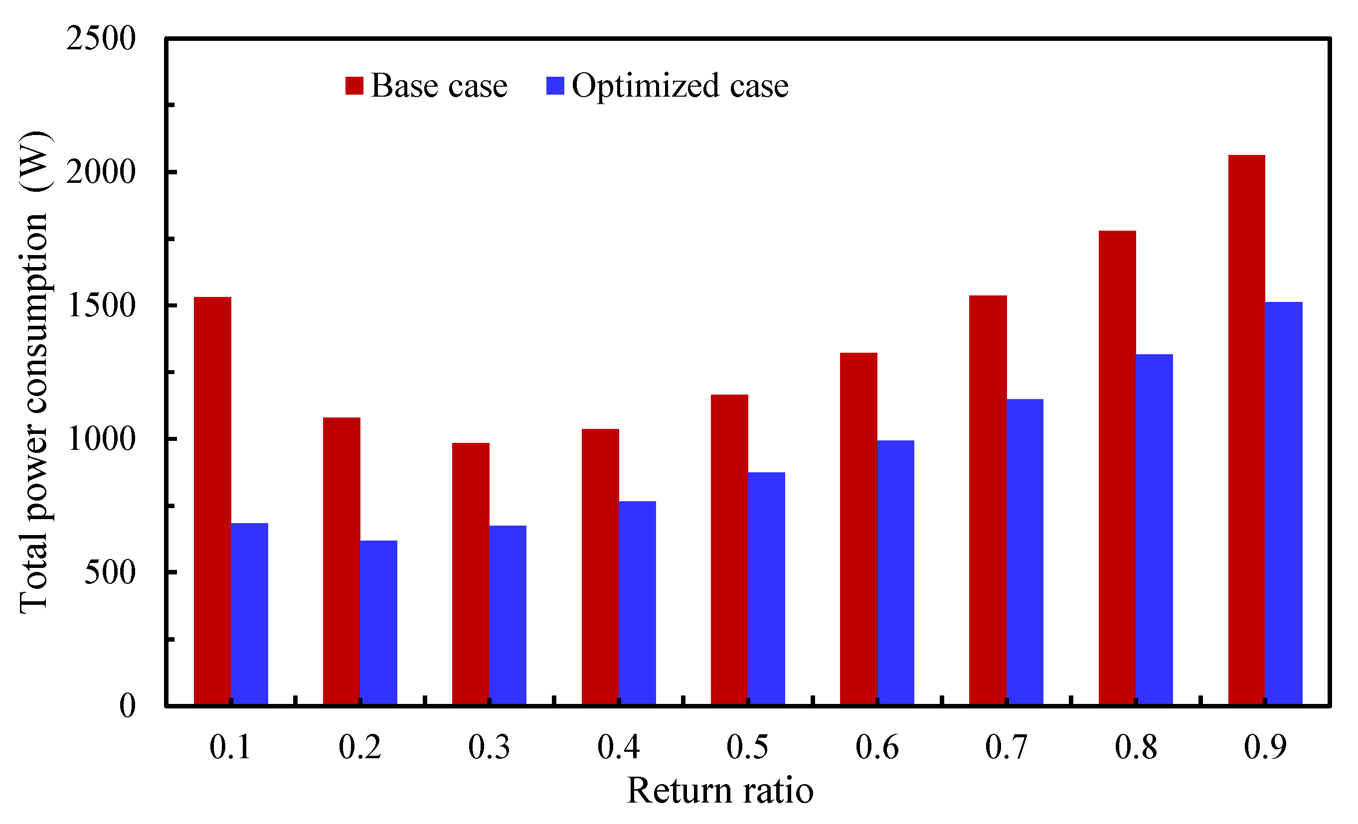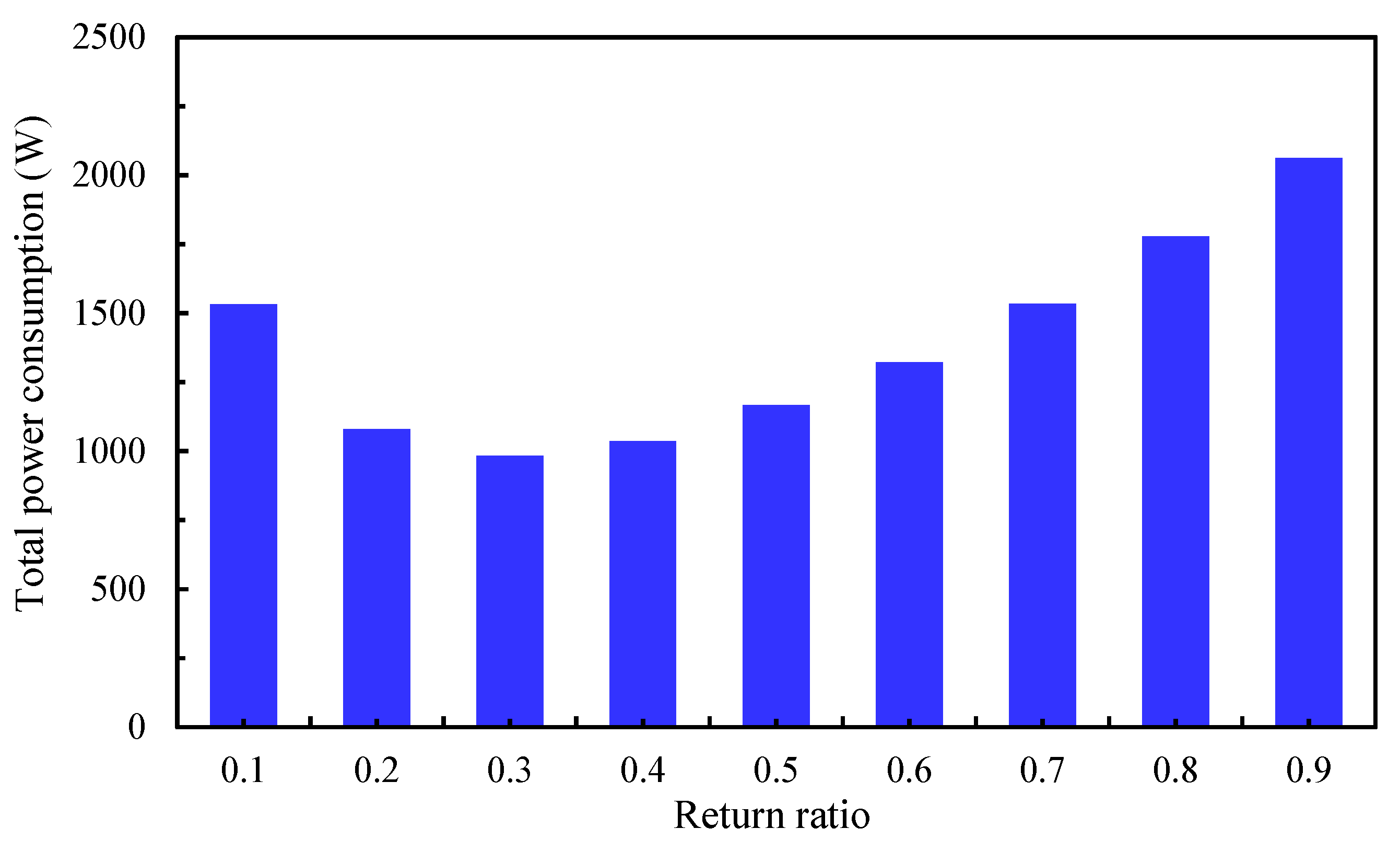 3.3. Impact of the Return Ratio on the Power Consumption