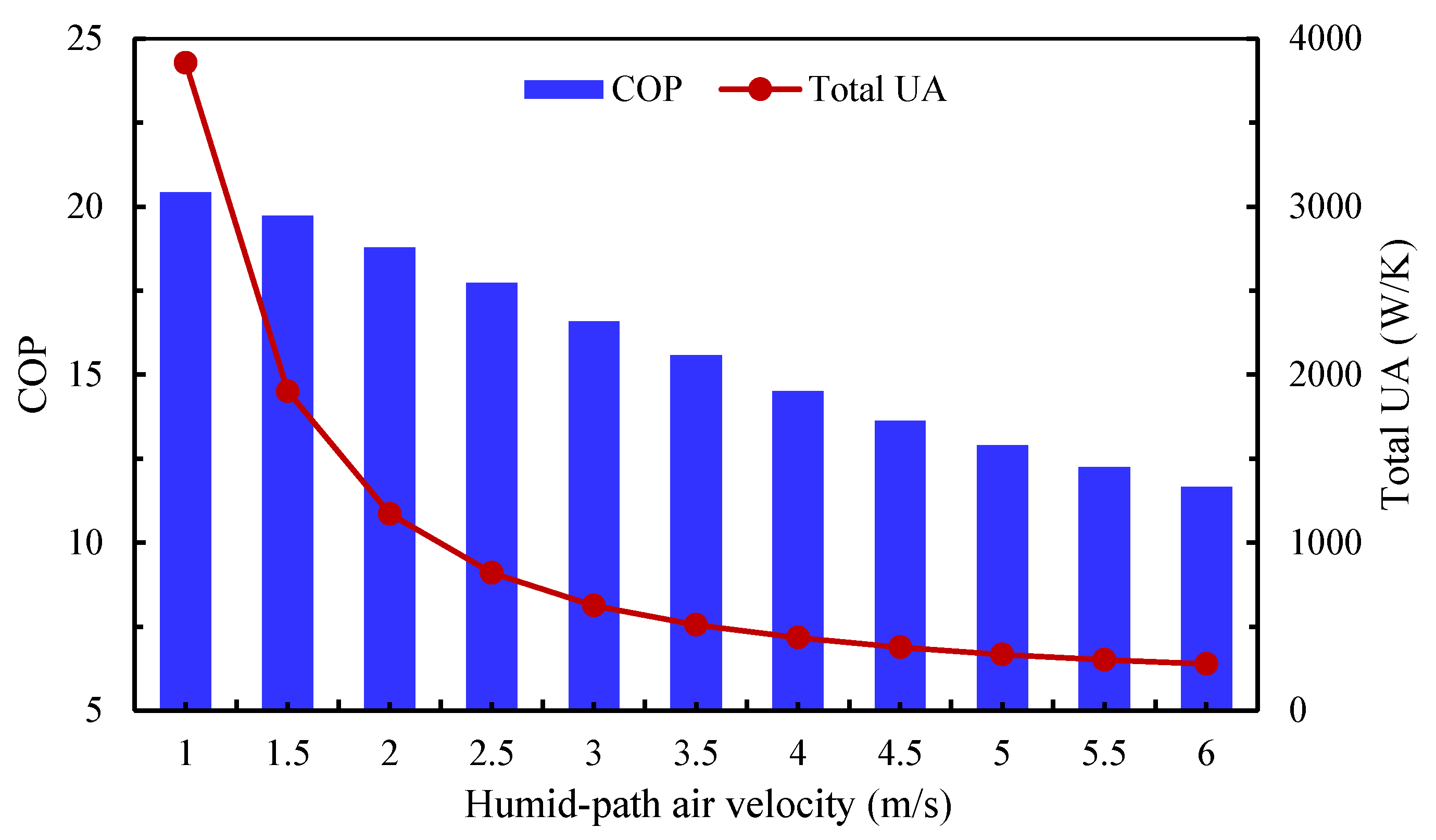 - The optimization study demonstrated that simultaneously reducing the humid-path air velocity and increasing the HX depth can substantially improve the system performance.