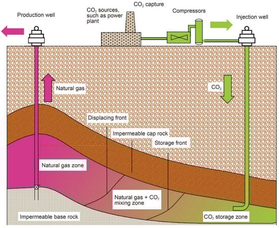 Displacement mechanism scheme for CO2 and natural gas [].