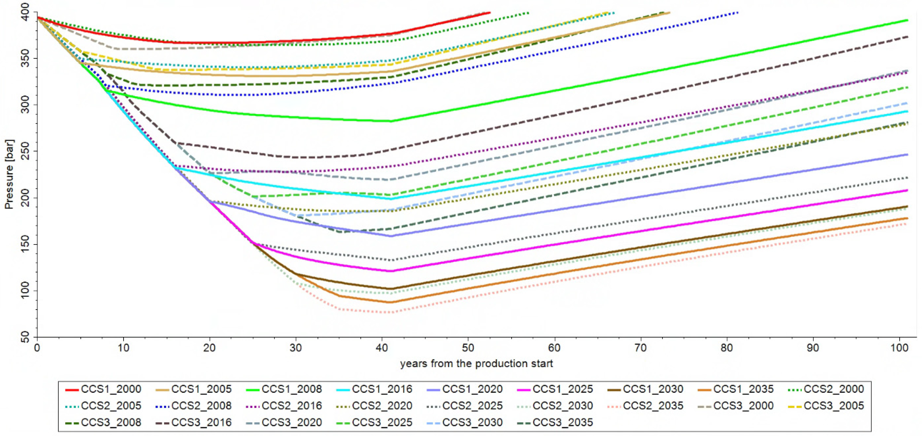 However, it was out of the scope of this work to investigate the influence of different injection rates in the ‘pure’ storage period. This would surely change the dynamics of the reservoir pressure increase in time.
