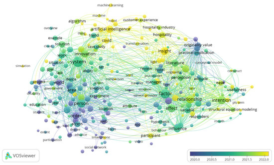 In an overarching analysis, we examined the diverse interconnections among topics of significant interest. Artificial intelligence emerges as a prominent area of study, with links to issues such as robotics, customer experience, and the hospitality industry. This underscores the idea that AI represents a central and increasingly relevant theme in contemporary discourse.