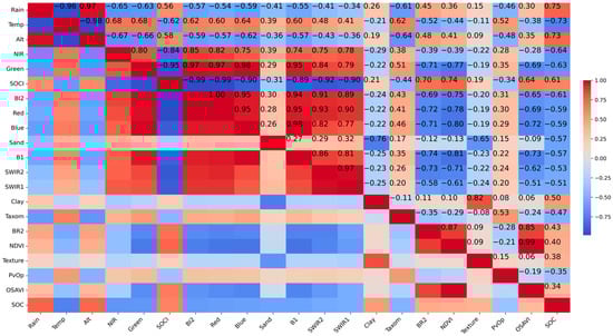Proposed potential SOC predictor variables after preliminary Spearman correlation analysis.