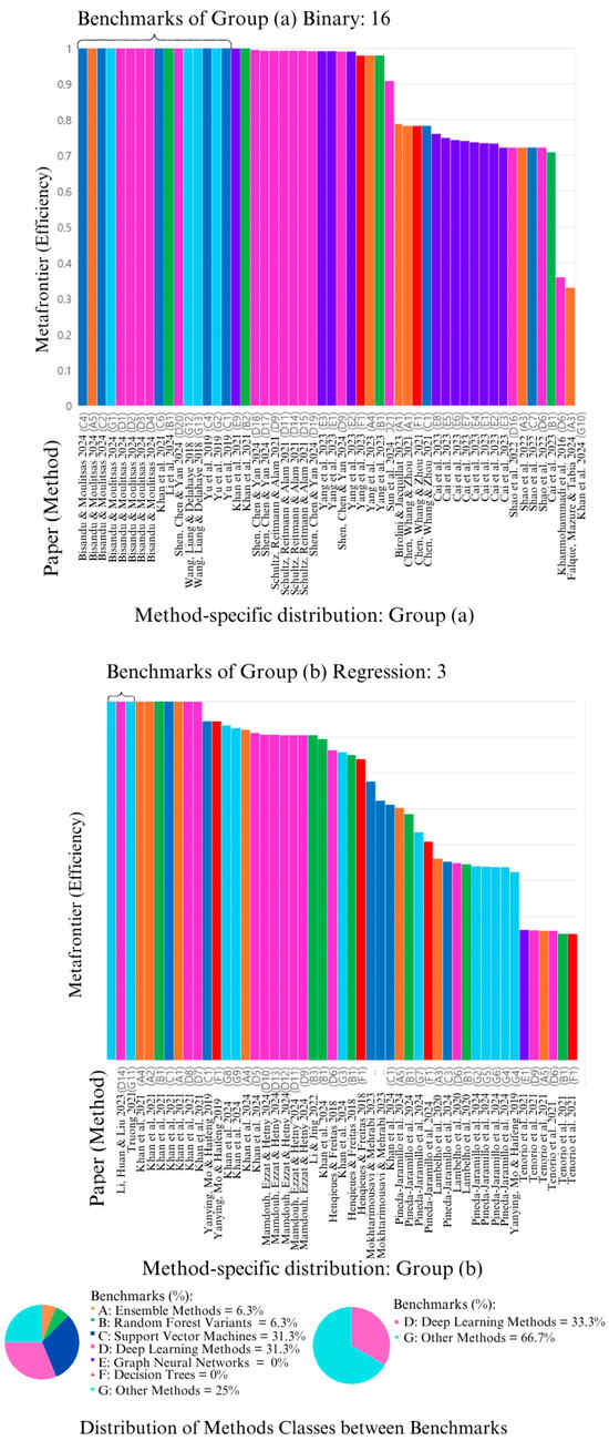 Therefore, utilizing Data Envelopment Analysis (DEA) alongside meta-analysis is substantiated by the necessity to assess efficiency across disparate groups operating within analogous technological contexts. According to ref. [29], the combination of DEA and meta-analysis is imperative to assess the divergence in technological progress between specific groups, thereby enriching the efficiency analysis of studies employing disparate methods, such as machine learning (ML).