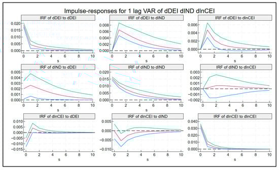 - Abrigo, M.R.M.; Love, I. Estimation of panel vector autoregression in Stata. Stata J. 2016, 16, 778–804. [Google Scholar] [CrossRef]