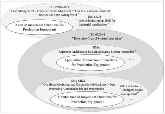 The third category concentrates on the maintenance management of the production equipment’s own structure, which is also a key task for equipment-related managers in current manufacturing enterprises, that is, ensuring the normal and efficient operation of equipment. Examples of relevant international standards include IEC 62264 Enterprise-Control System Integration [