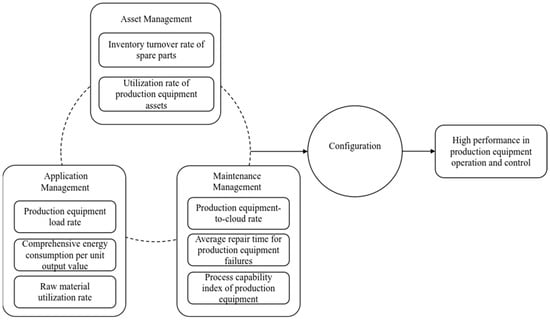 25] and extensively analyze the impact of individual variables on equipment operation and control performance outcomes. Although these analytical approaches can identify key influencing factors, they overlook the intertwined impacts of complex factors, such as different production models, management strategies, and operating environments. As a result, they failed to clarify the interaction effects among various factors and the mechanism through which these factors influence the efficiency and effectiveness of equipment operation and control. By integrating the fsQCA method, this study is the first to incorporate key performance indicators from three aspects—asset management, application management, and maintenance management—into fsQCA. It systematically explores multiple equivalent paths to achieve high performance, providing path exploration to solve the problem of improving production equipment operation and control performance in industrial internet scenarios.