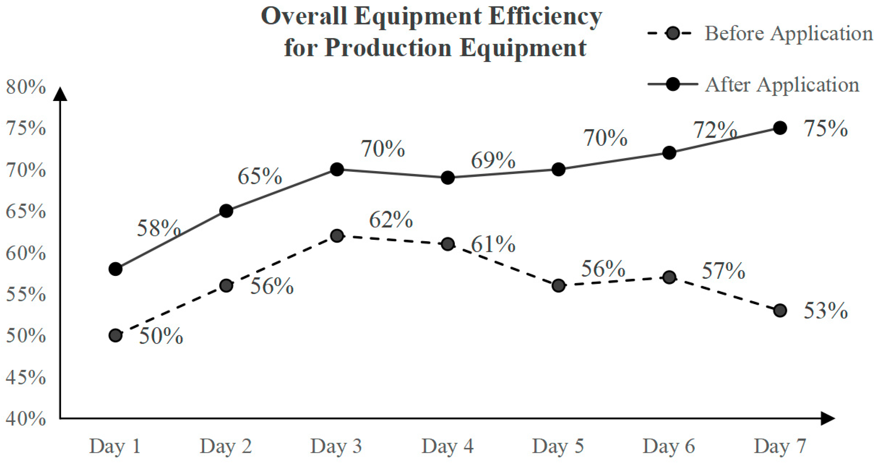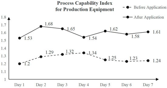 Figure 5). This result shows that by applying the functional model for the equipment predictive maintenance scenario, the two key indicators of the equipment process capability index and the average repair time of equipment faults have been significantly improved, effectively enhancing the continuity and stability of the production process and promoting a substantial improvement in the OEE of the production equipment in this workshop.