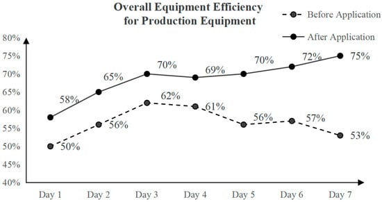 Figure 4). The average value of the OEE of the production equipment increased from 56.43% to 68.57% (