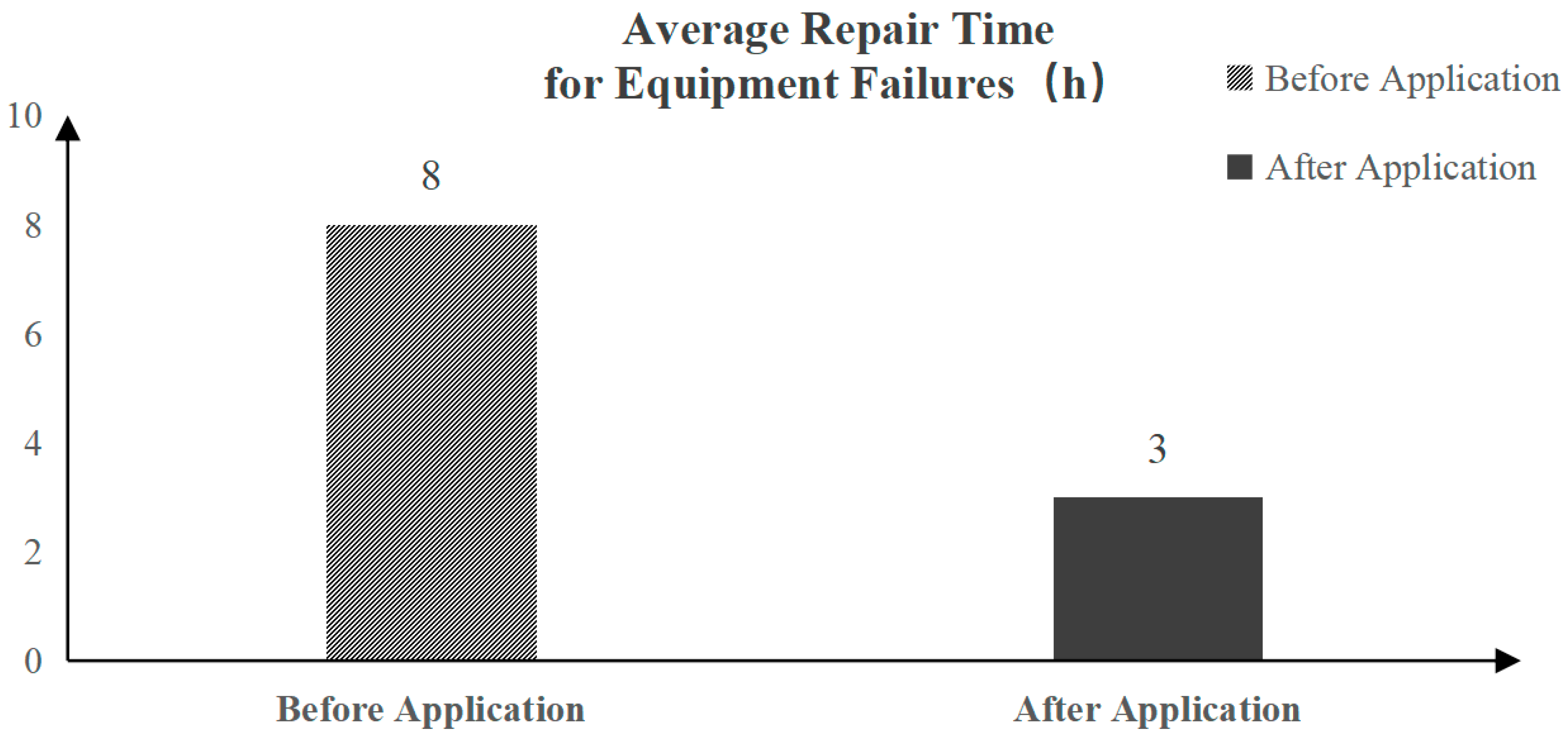 After the deployment and application of the industrial APP for equipment predictive maintenance, the performance of the enterprise’s equipment operation management and control significantly improved. The average value of the production equipment process capability index in the workshop increased from 1.28 to approximately 1.60 (