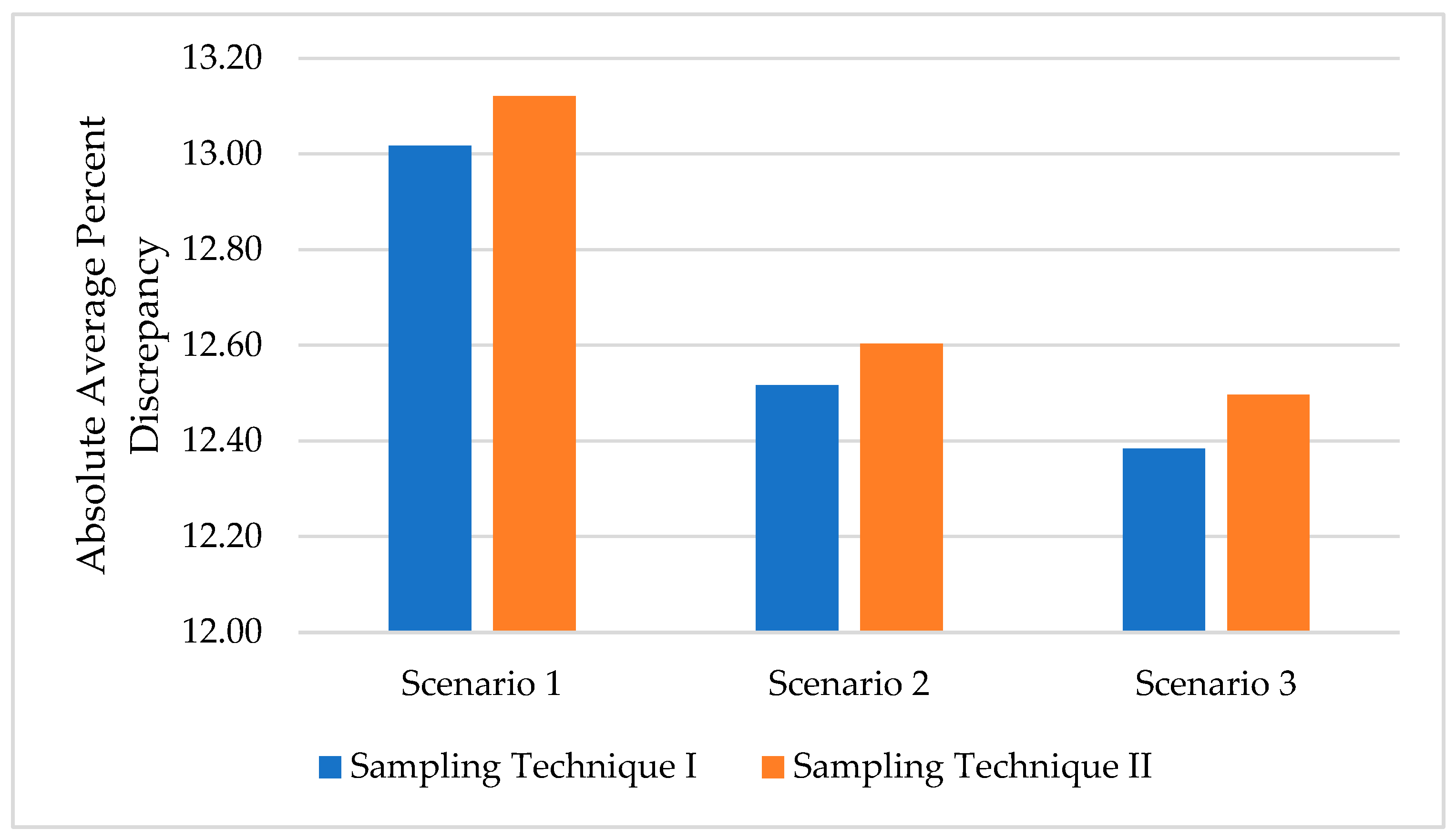 | Sampling Technique I | 13.017 [5.83] * | 12.517 [1.76] | 12.383 [0.68] |