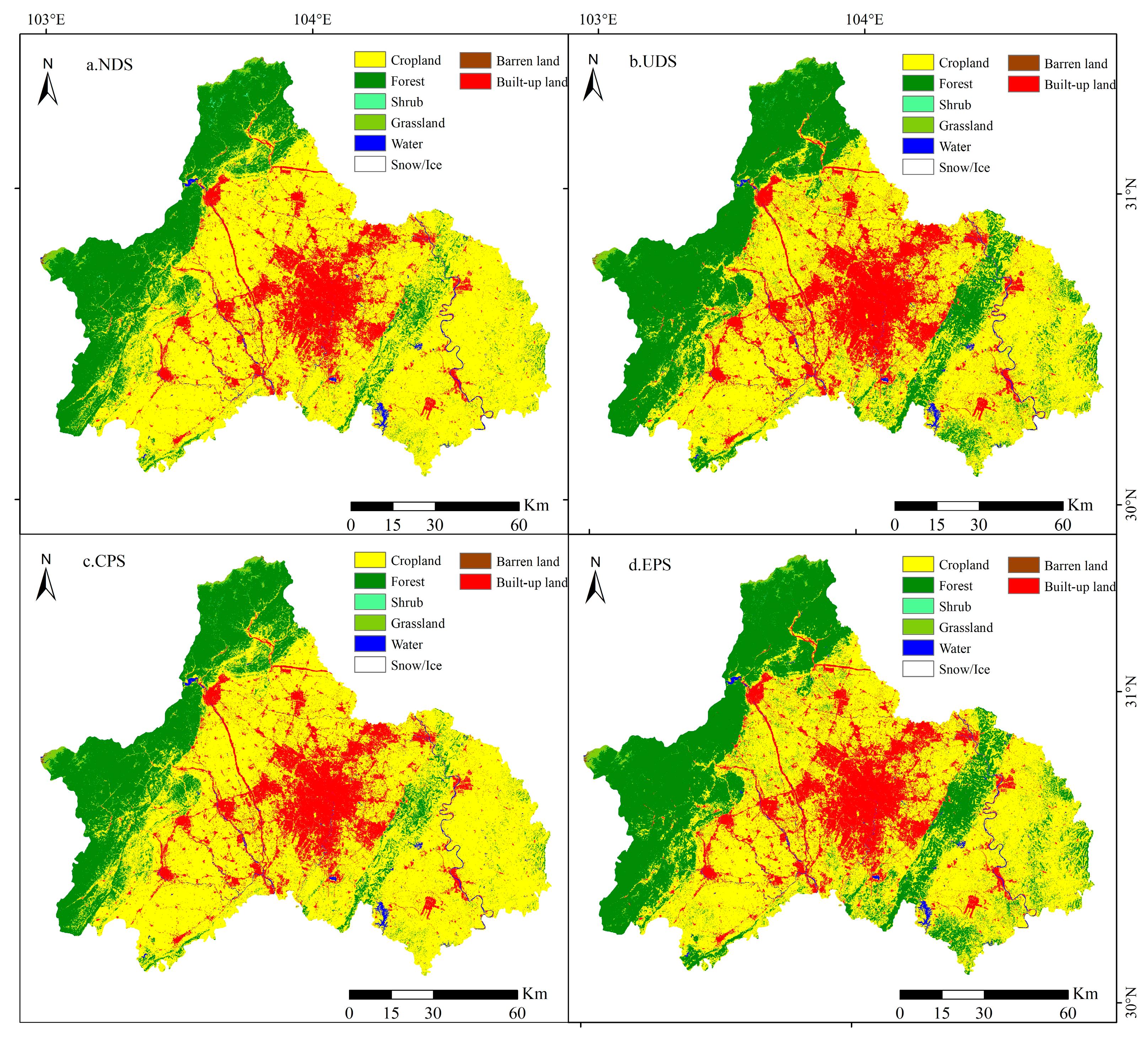 Table 5. Land Use Change in Chengdu Under Four Scenarios for 2020–2030.