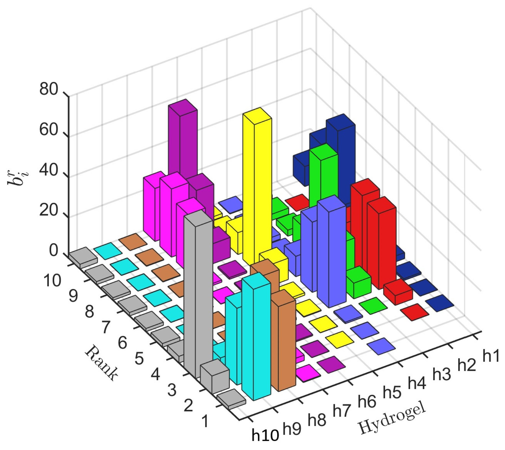Ten MADM methods were employed to analyze data generated by Monte Carlo simulation. Ten thousand decision matrices were built and 10,000 rankings were generated by each of the 10 methods employed in the case study presented here. Therefore, evaluating ranking similarity (correlation) is necessary to determine how similar obtained rankings are and obtain valuable insights into method efficacy and applicability in real-world contexts. Evaluating ranking similarity is a relevant practice and a helpful input for those who need to select a solution for multi-attribute problems. When rankings align, it makes the decision about the most favourable solution easier to explain and defend to stakeholders and obtain valuable insights into method efficacy and applicability in real-world contexts. However, some methods may favour certain alternatives due to their computational structure. Ranking similarity helps reveal such biases, but other tools must be used to aid in identifying the most promising solution(s) for multi-attribute decision-making problems. For this purpose, ranking acceptability and pairwise winning indexes are helpful and used to identify the most promising hydrogel(s).