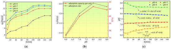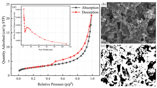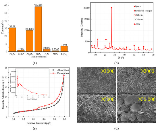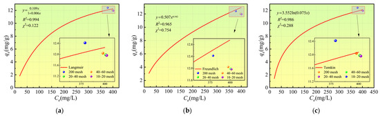 2+ removal. The adsorption process was further elucidated through isotherm, kinetic, and thermodynamic modeling. The results demonstrate that the unique slit-shaped/plate-like mesoporous structure of coal gangue provides a favorable physical foundation for adsorption. Batch experiments identified optimal conditions at pH = 8 and 40 °C, achieving a maximum adsorption capacity of 12.4 mg/g. The process followed the Langmuir isotherm model (