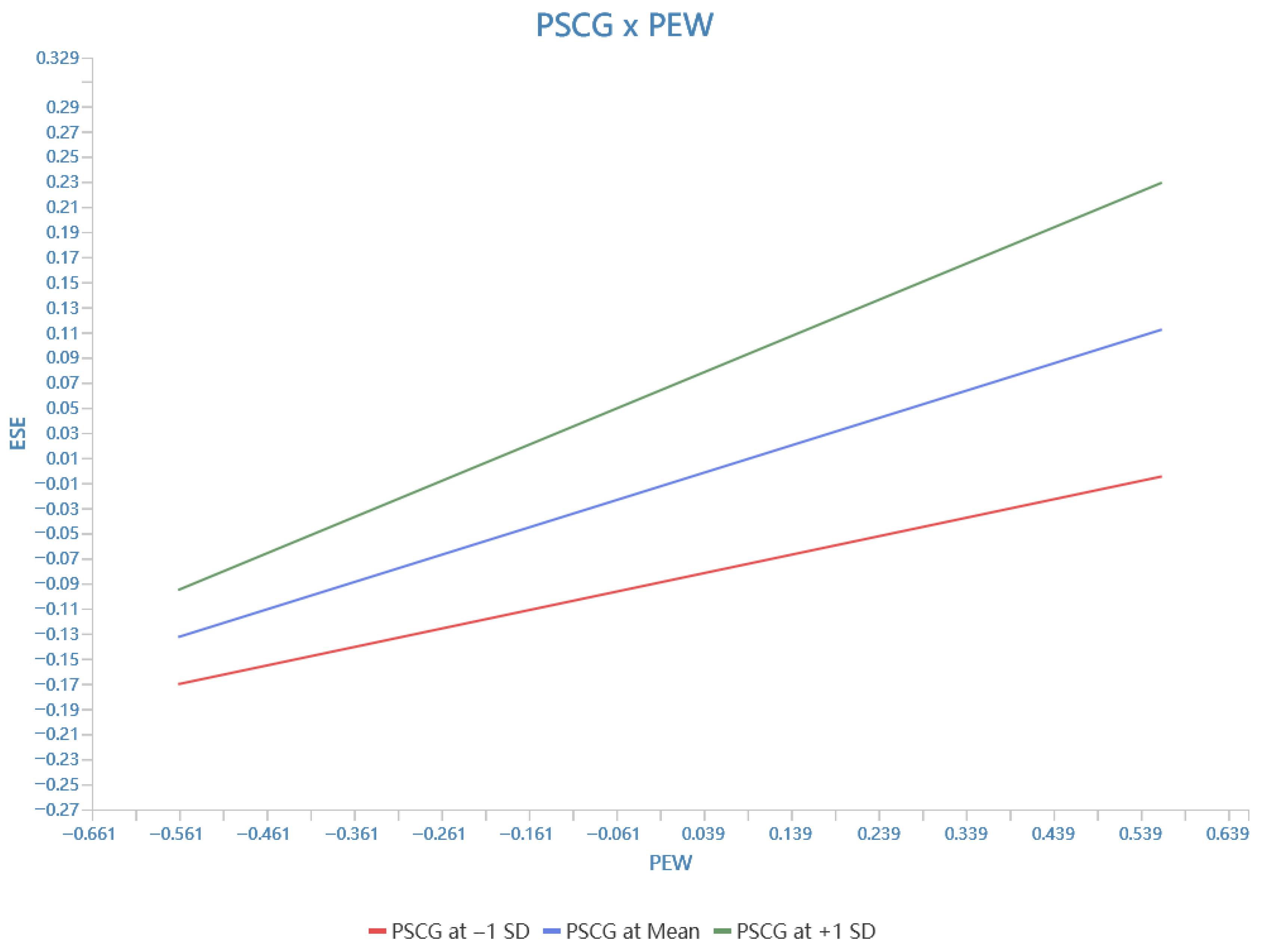 | ESE | PEW | 0.302 | 0.091 | 26.499 *** | 0.114 | 3.371 ** |