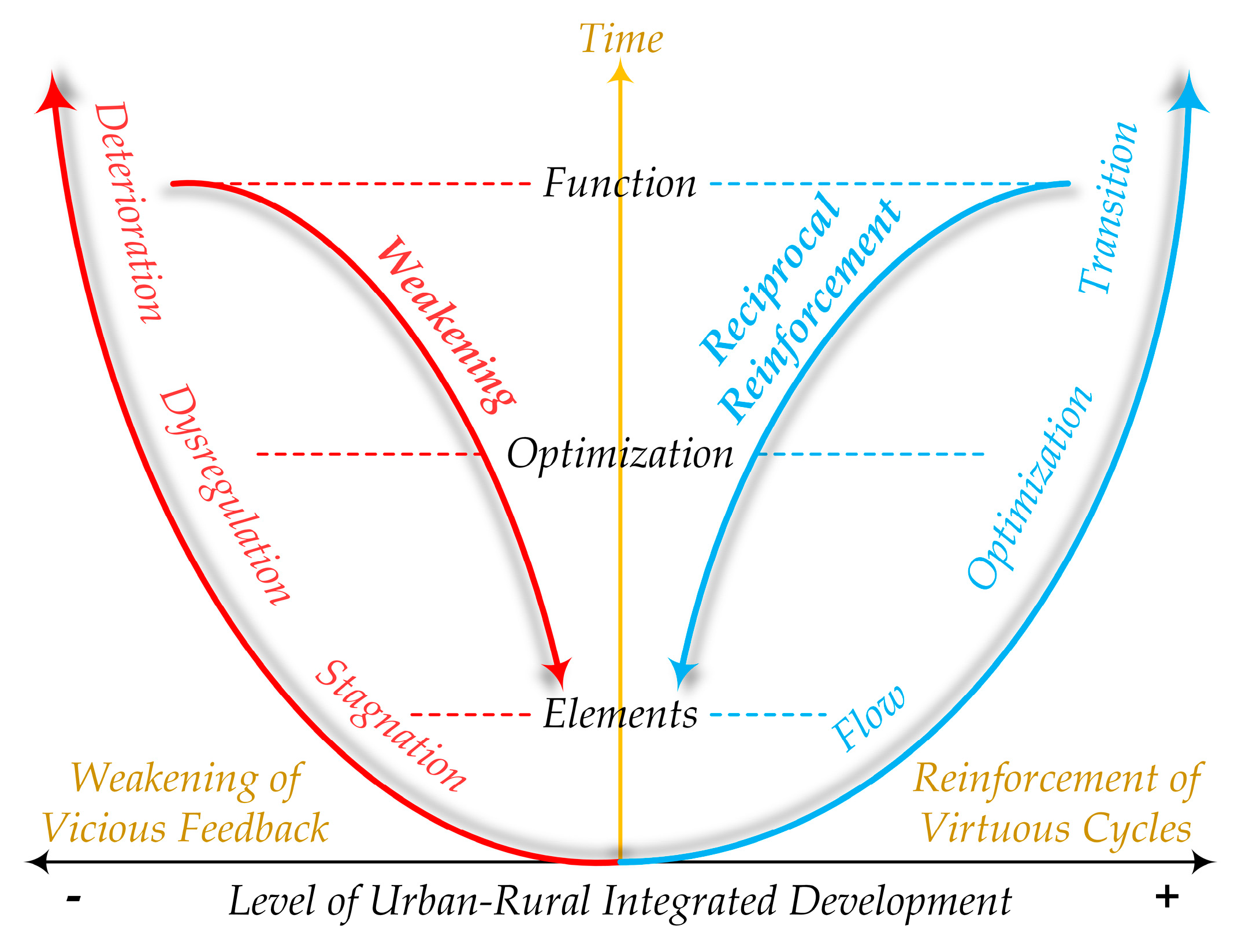 - Lin, J. Promoting Chinese path to modernization with high-quality urban-rural integration development. Frontiers 2024, 30–36. [Google Scholar] [CrossRef]