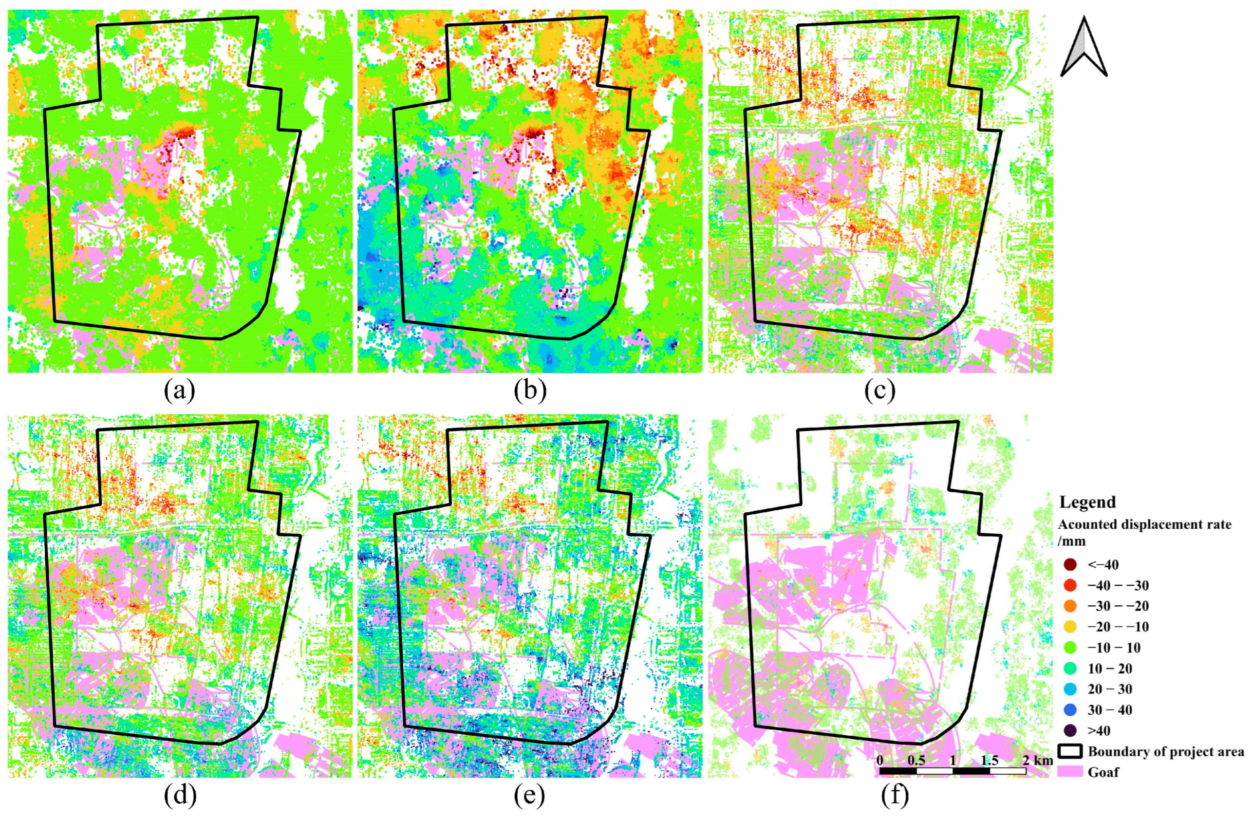 - Chen, Y.; Dong, X.; Qi, Y.; Huang, P.; Sun, W.; Xu, W.; Tan, W.; Li, X.; Liu, X. Integration of DInSAR-PS-stacking and SBAS-PS-InSAR methods to monitor mining-related surface subsidence. Remote Sens. 2023, 15, 2691. [Google Scholar] [CrossRef]