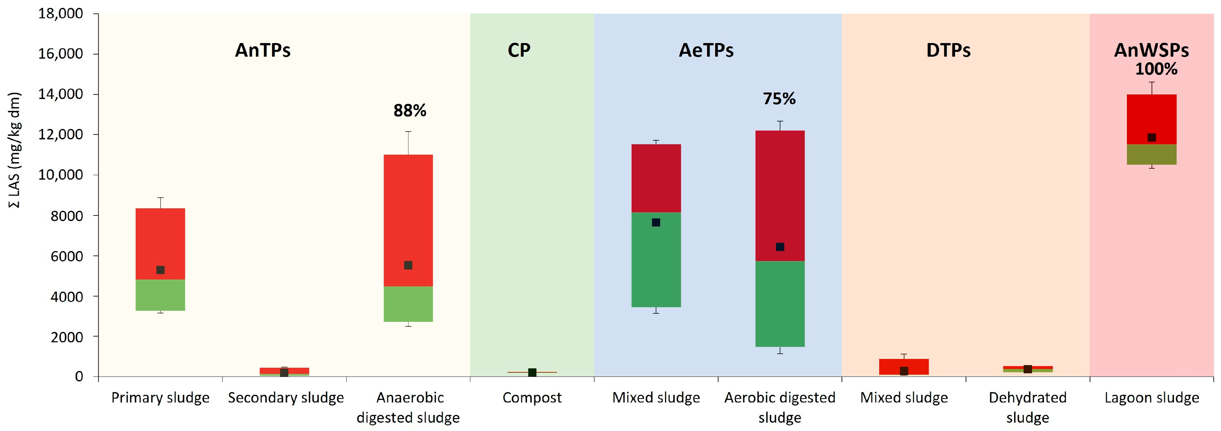 | Sludge Treatment | Sludge | ΣLAS | ||