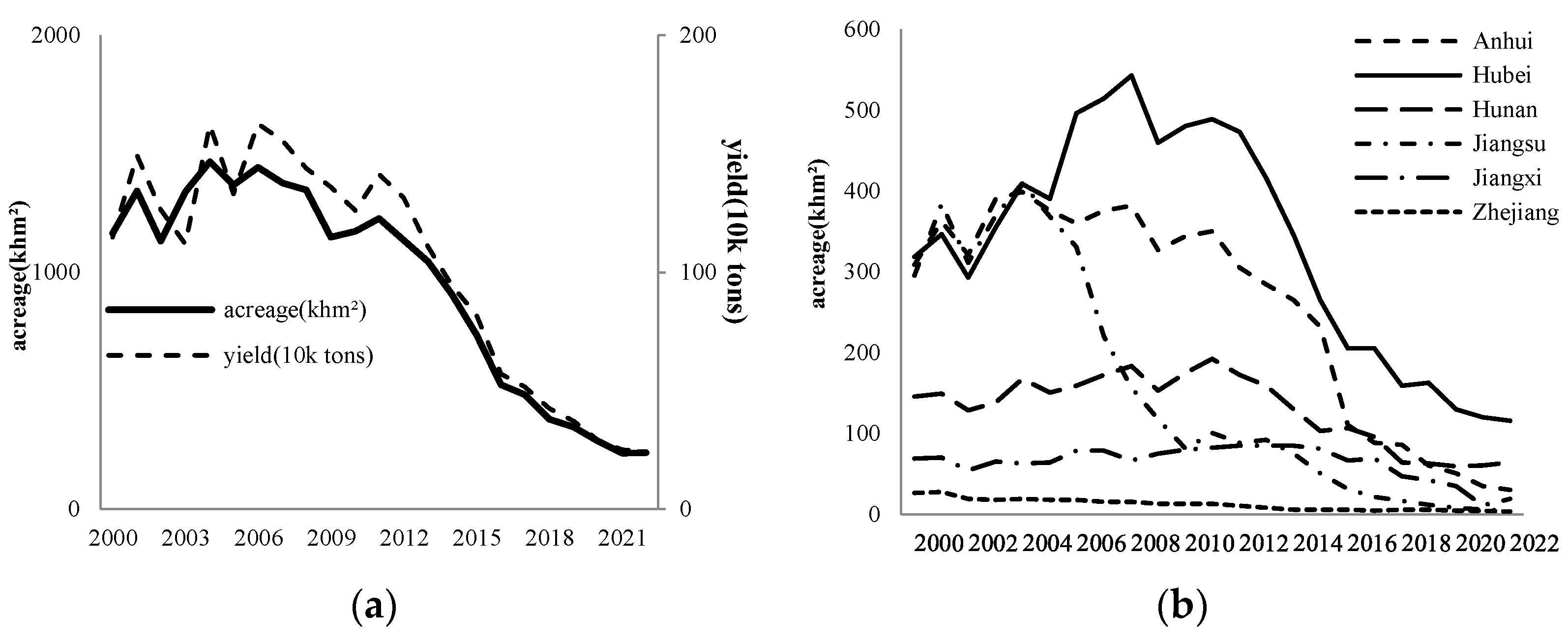 APA StyleWang, Q., Han, J., & Zhang, J. (2025). Non-Farm Employment, Agricultural Policies and Cotton Planting Acreage Decline in China’s Yangtze River Basin: 2000–2022. Sustainability, 17(22), 10039. https://doi.org/10.3390/su172210039