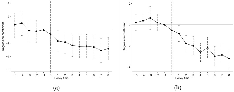 - Callaway, B.; Sant’Anna, P.H.C. Difference-in-Differences with multiple time periods. J. Econom. 2020, 225, 200–230. [Google Scholar] [CrossRef]