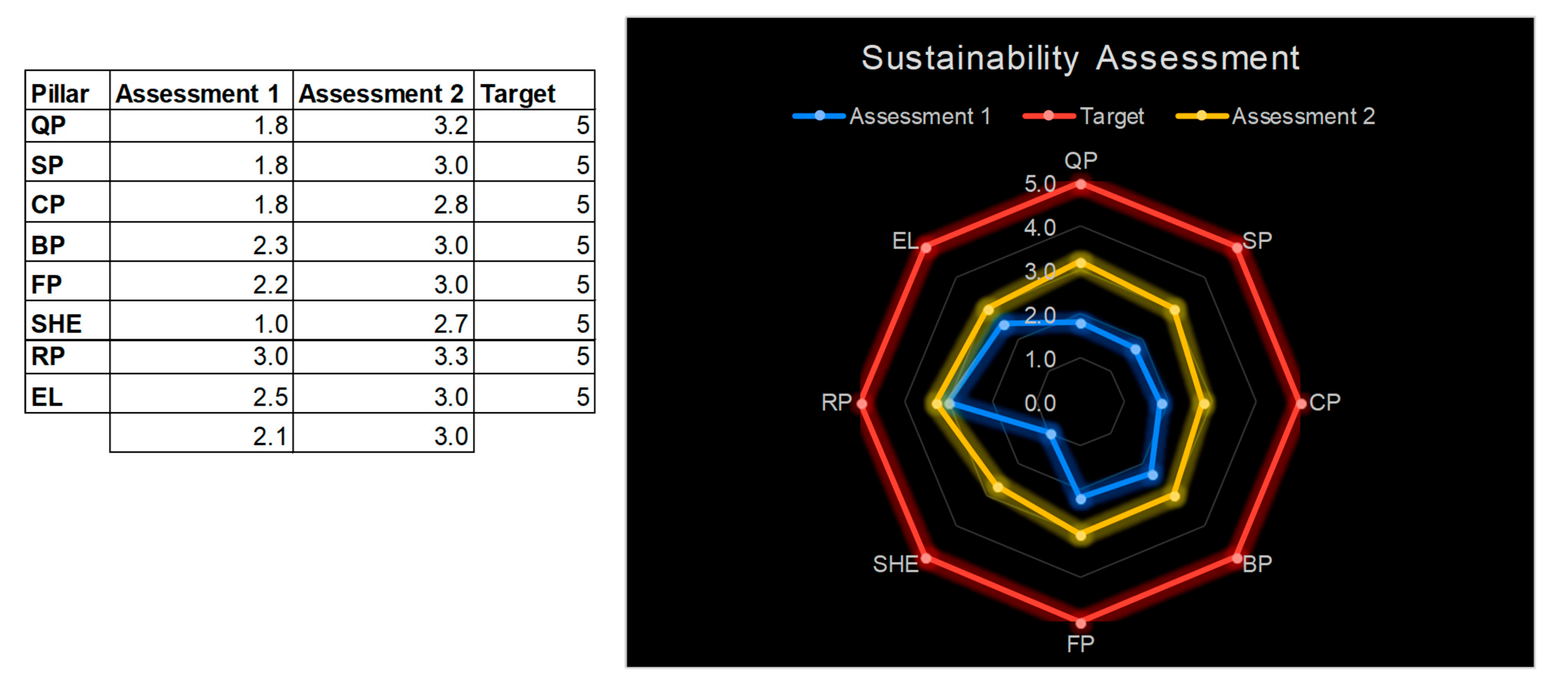 Each pillar is assessed using a structured maturity assessment tool, guiding management to identify performance gaps, prioritise interventions, and track progress through defined maturity levels. The maturity levels were defined by [