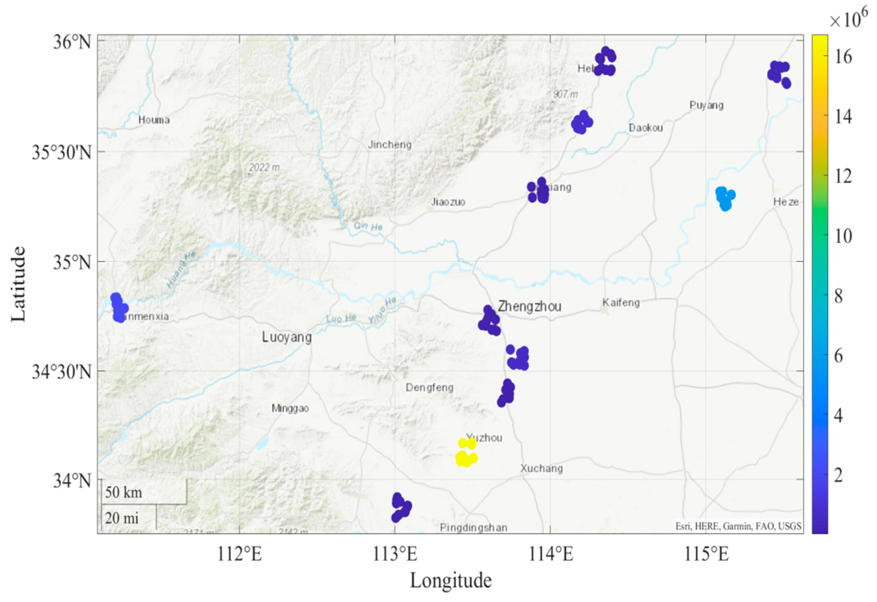 Low-risk clusters and noise points (Qixian Station, Tangyin East Station, etc.)