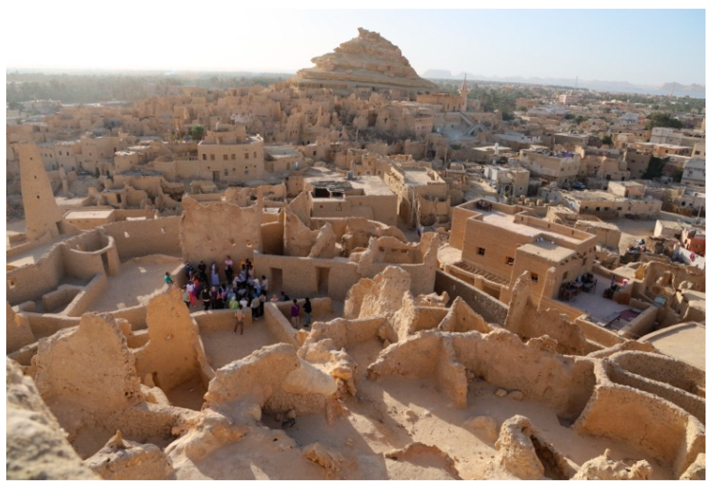 - Barakat, M.M.M. Siwa community development and environment conservation: A revolution of development in the lost oasis, Siwa. J. Agric. Econ. Soc. Sci. 2011, 2, 861–874. [Google Scholar] [CrossRef]