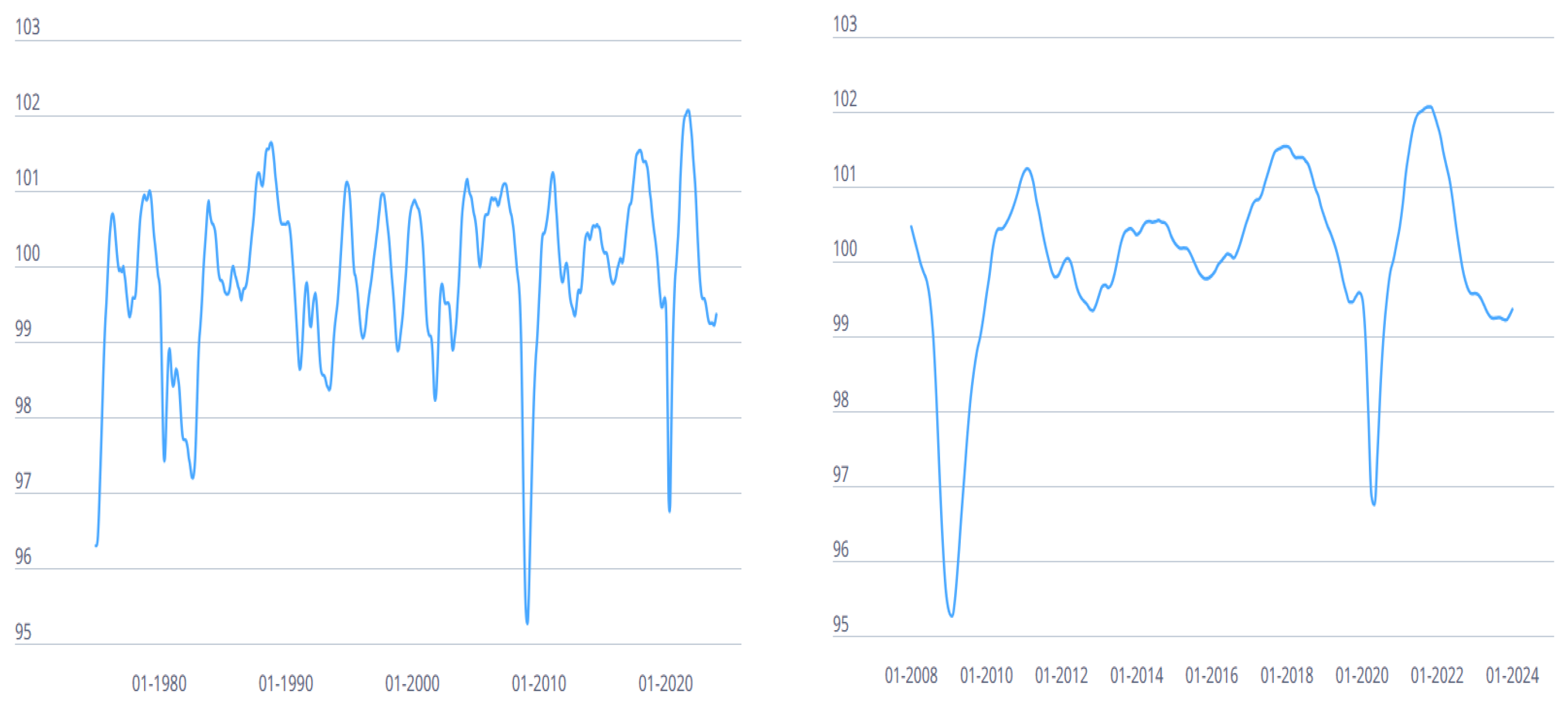 Figure 1 vividly illustrate the dynamics of changes in business confidence across OECD countries during 1980–2024. They demonstrate that following periods of crisis—such as the Cold War, the energy crisis, the dissolution of the USSR, financial and economic downturns, pandemics (including COVID-19)—phases of recovery typically emerge, largely driven by the resurgence of business optimism.