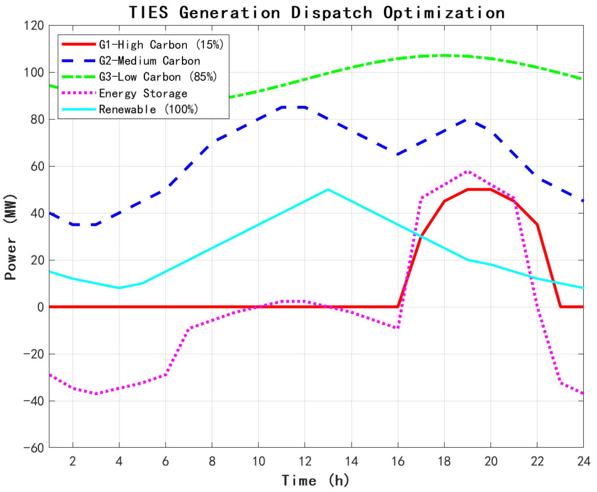 Strategic discharge during low-renewable periods.