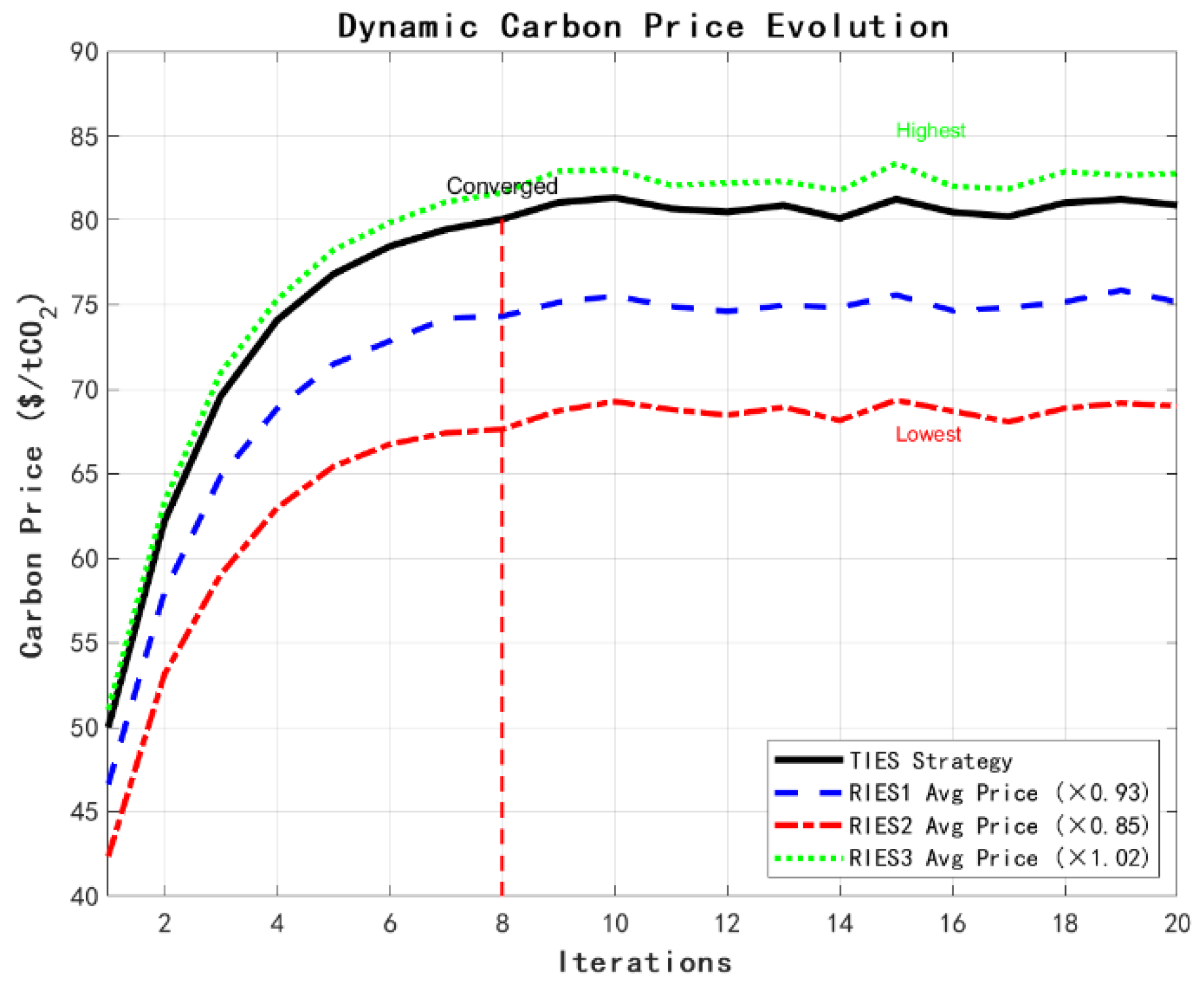 (3) Dynamic incentive effect: The multi-dimensional dynamic ladder carbon pricing system realizes precise and differentiated incentives by comprehensively considering the time period, history, scale, and other factors. Compared with the fixed carbon price, the dynamic carbon price improves the carbon emission reduction effect of the system by 9.5 percentage points.