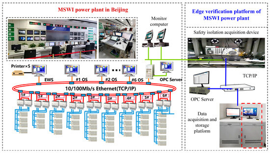 The data in this article were sourced from an MSWI power plant in Beijing. The structure of the edge verification platform for realizing real-time data collection is shown in Figure 2.
