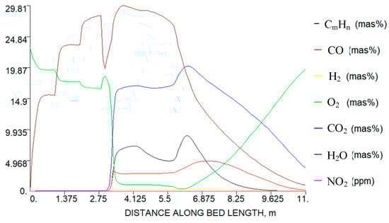 In addition to NO2 being reduced to NO at temperatures above 600 °C, this zone also contains some reducing gases that reduce NOx, such as CO’s reduction reaction with NO [26]: