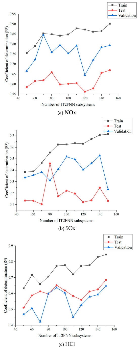 For coal-fired power plants, software has been used to model boilers and combustion processes, investigating strategies to reduce nitrogen oxide emissions, the impact of flue gas recirculation, and mechanisms of nitrogen oxide formation and reduction [12,13]. Models for wet flue gas desulfurization systems and sulfur dioxide prediction have also been developed [14,15,16], and there are also some other related studies on flue gas desulphurization. Tao et al. [17] took the Bayer method’s red mud as the research object, which centered on its application in flue gas desulfurization, and the degree of influence of each factor on the efficiency of desulfurization was determined through orthogonal and single-factor experiments. However, there are no reports analyzing how “air and material distribution” variables affect pollutant concentrations throughout desulfurization and denitrification processes from a control perspective, particularly for the MSWI process.