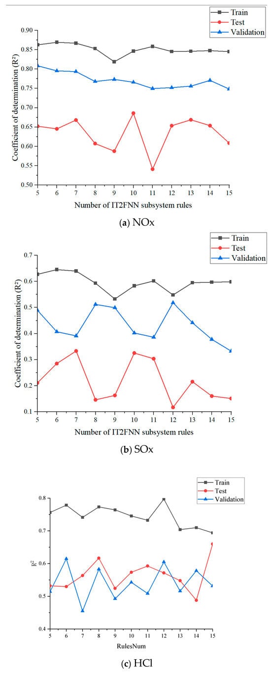 Fuzzy logic systems and fuzzy neural networks are widely used in industrial research for their ability to handle nonlinear problems and uncertainty [21], while interval type-2 fuzzy systems extend this capability by incorporating uncertainty boundaries [22]. However, their complex architecture creates challenges in parameter learning. The broad learning system offers an efficient solution, enabling large-scale data learning with reduced computational complexity by updating only output layer weights, avoiding multi-layer iterative training [23]. Combining interval type-2 fuzzy systems with broad learning systems thus holds promise for modeling desulfurization and denitrification pollutants.