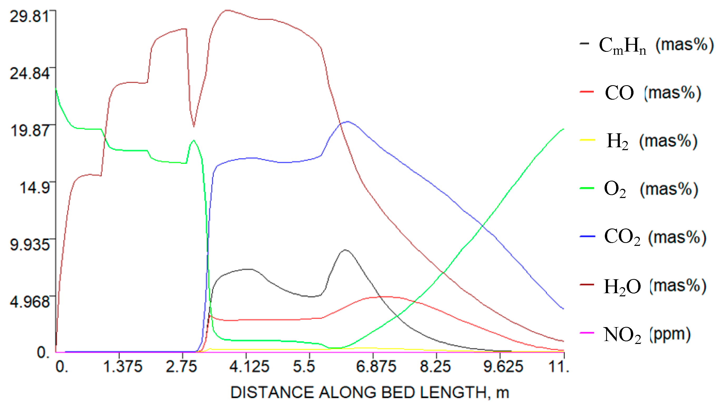 2 being reduced to NO at temperatures above 600 °C, this zone also contains some reducing gases that reduce NOx, such as CO’s reduction reaction with NO [