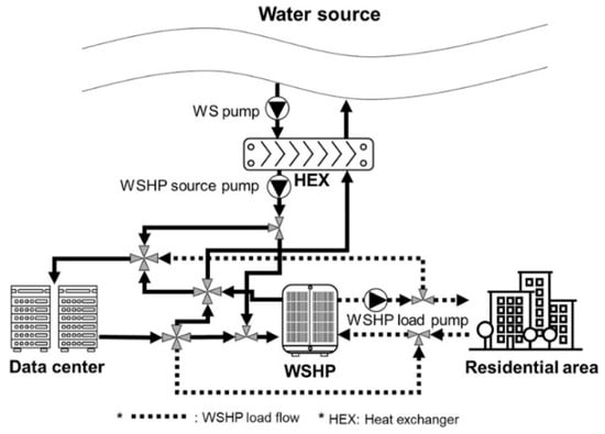 - Jang, Y.; Lee, D.; Kim, J.; Ham, S.H.; Kim, Y. Performance characteristics of a waste-heat recovery water-source heat pump system designed for data centers and residential area in the heating dominated region. J. Build. Eng. 2022, 62, 105416. [Google Scholar] [CrossRef]