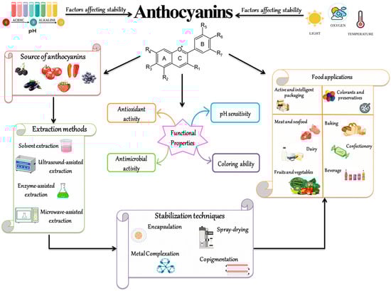 To address their stability issues [] and preserve their functionality during processing and storage, advanced protective techniques such as co-pigmentation and encapsulation have been developed [,].