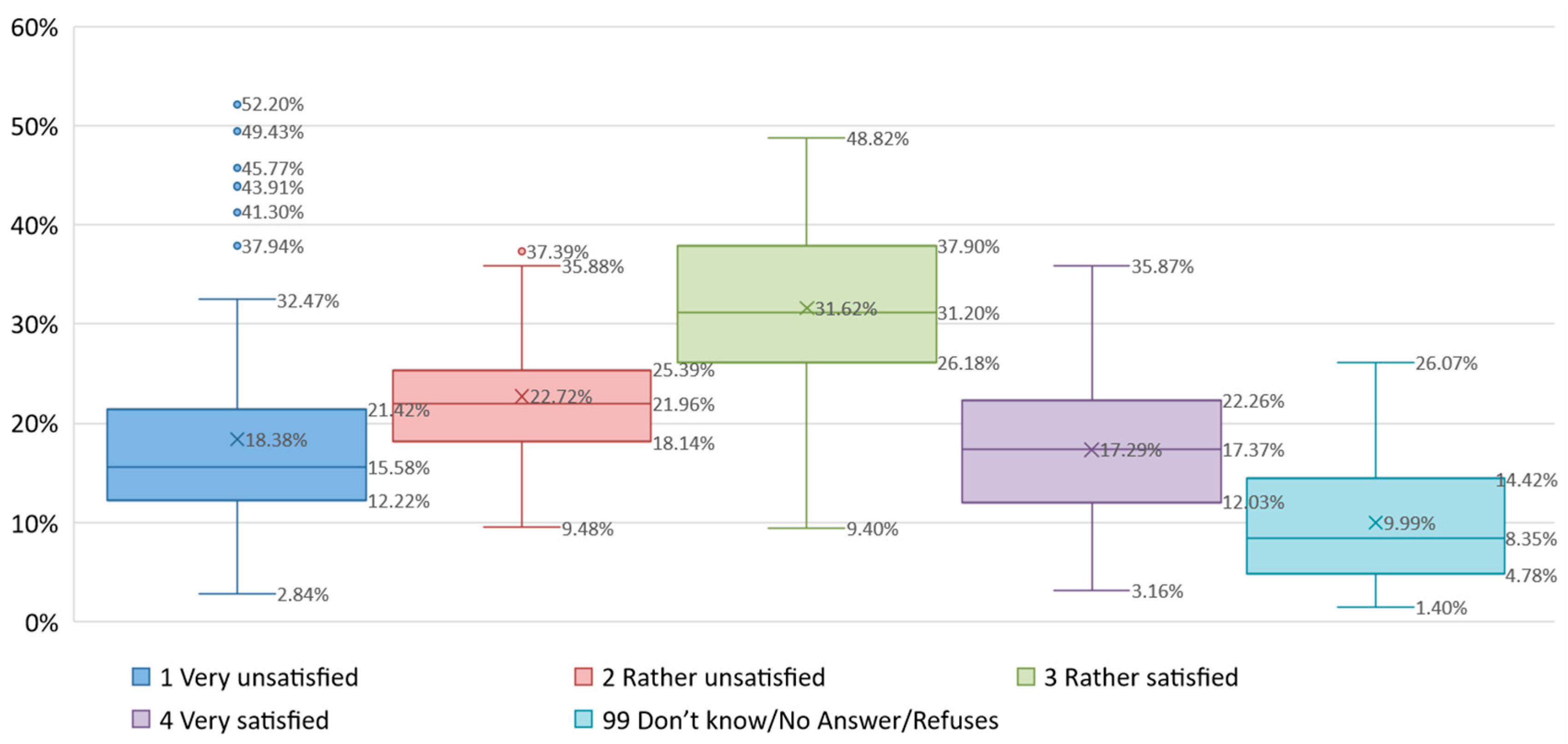 - Q5: Are there intra-country differences in perceived satisfaction with public administration across European cities in 2023?