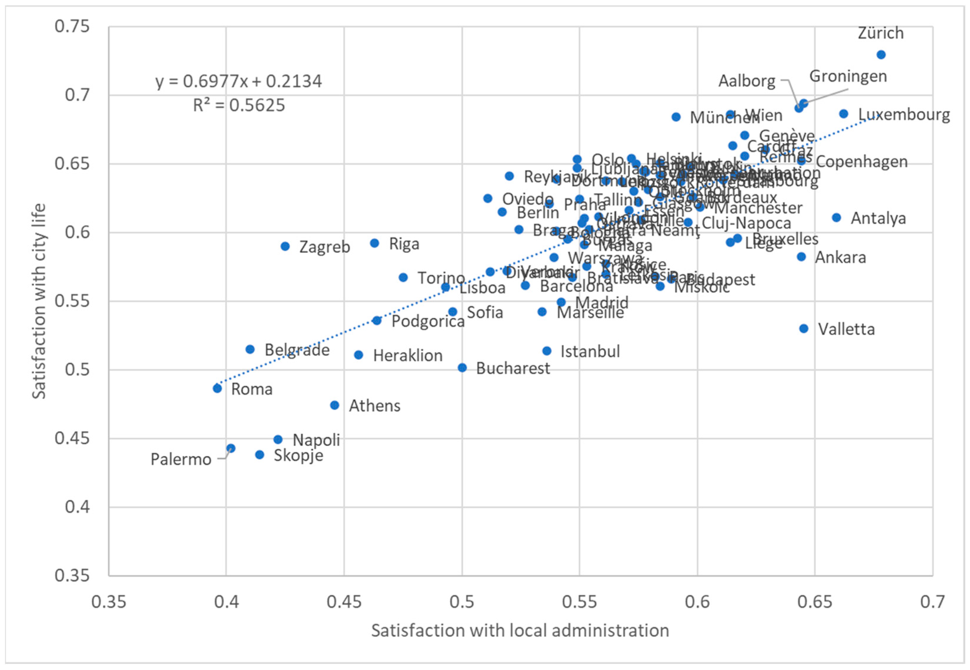 - Q1: How do European cities rank in terms of perceived satisfaction with local public administration in 2023?