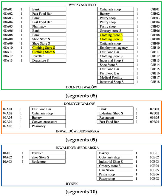 It should also be noted that, in the optional comments submitted during the surveys, respondents repeatedly highlighted the low quality of commercial premises along Zwycięstwa Street. At the same time, positive evaluations were influenced by the recent proliferation of gastronomic establishments (confectioneries, fast-food outlets, bakeries, bars), which have significantly improved the condition of many segments. Most of these premises are located in the first two sections near the Market Square, reflecting a kind of “spillover” of gastronomy from the Market Square area into Zwycięstwa Street. This phenomenon demonstrates the significance of the symbiosis and synergy effect, evidently considered when new restaurants are located in close proximity to existing ones.