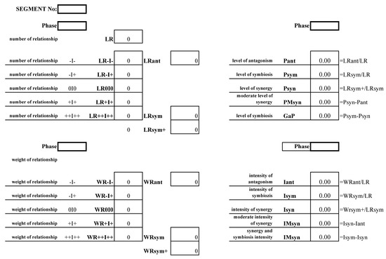 A set of calculation formulas is presented below, in accordance with the principles of the SyM_SyN Method [41]. The specific measures of symbiosis and synergy are provided in the Section 4.4.