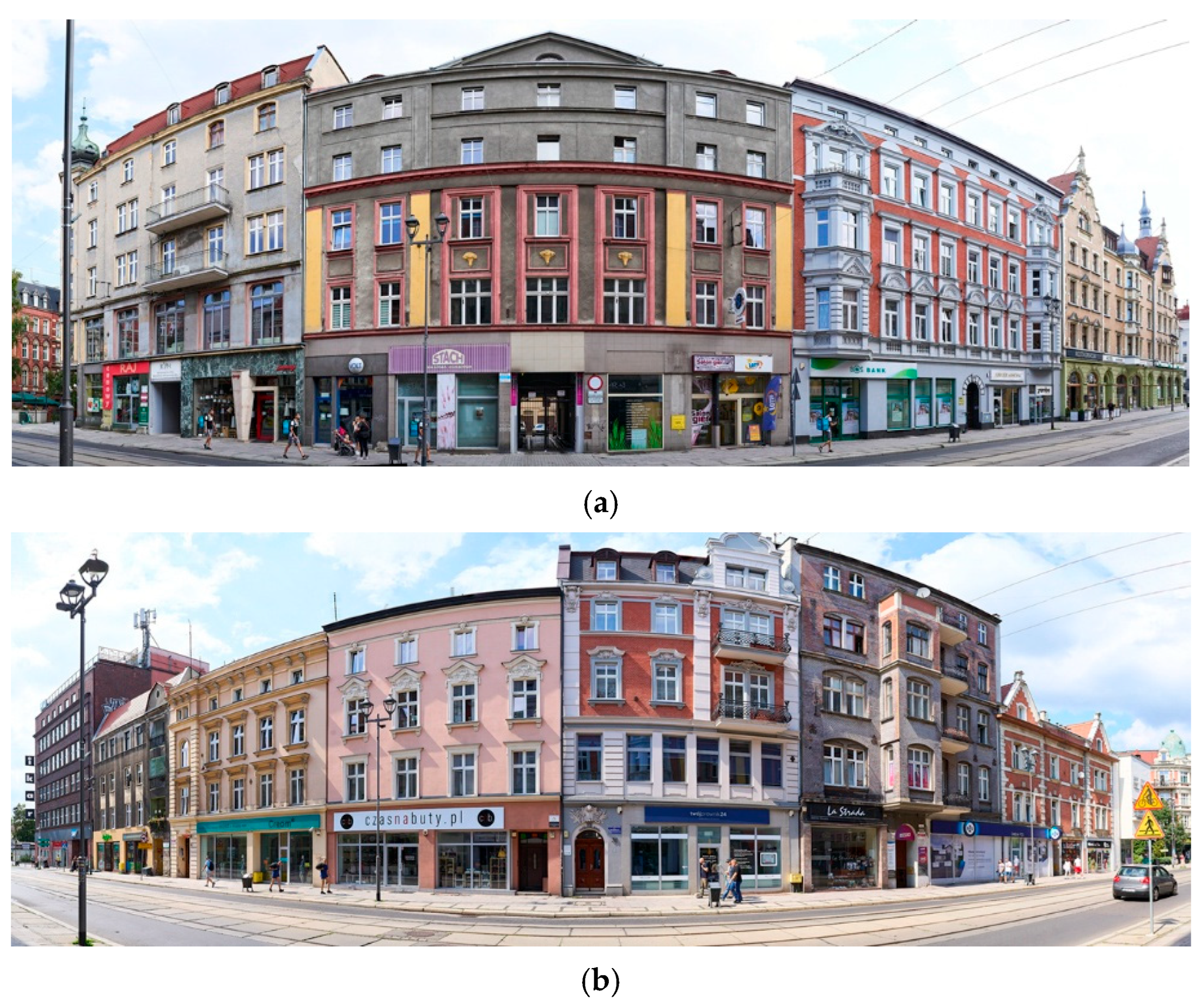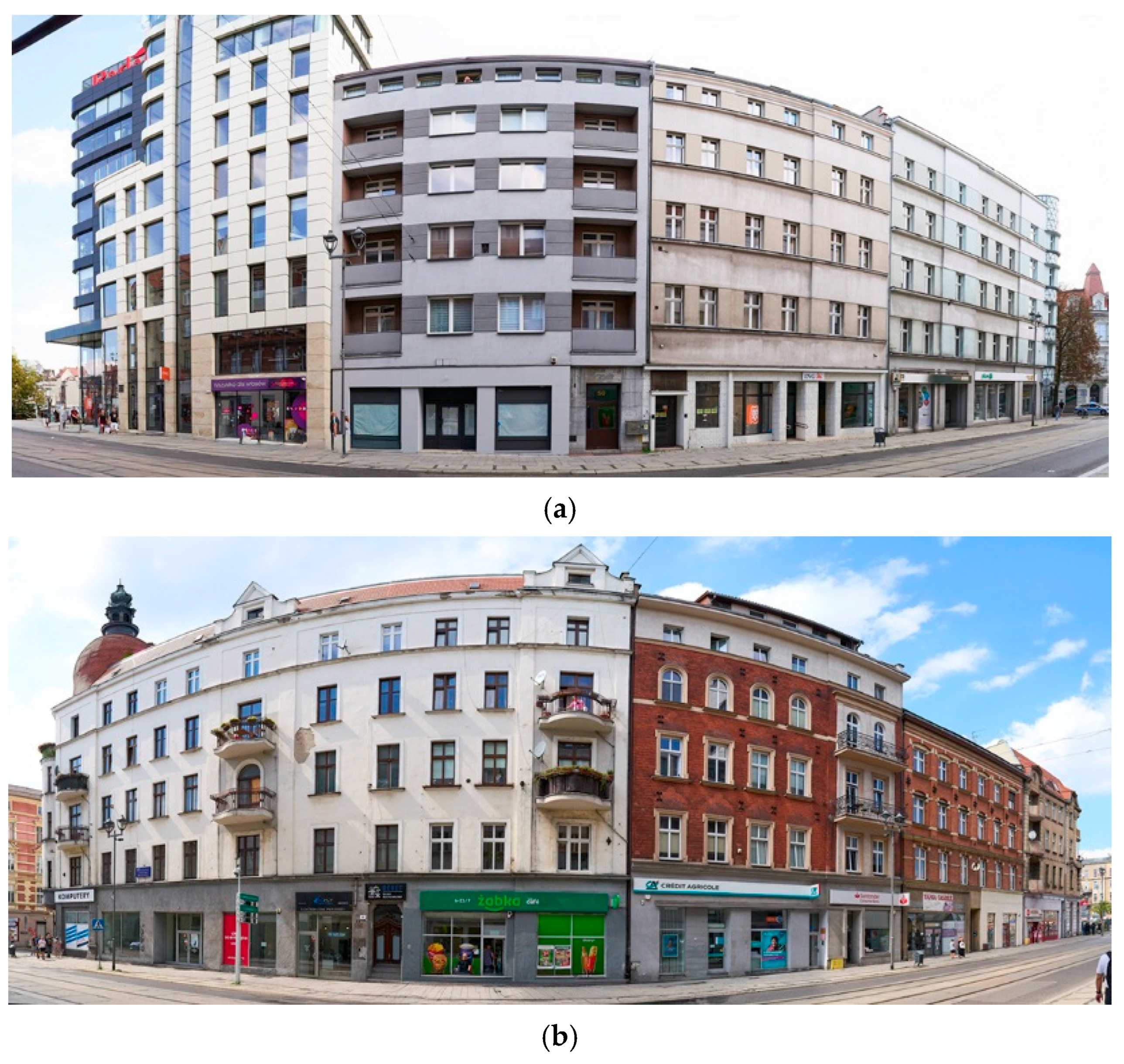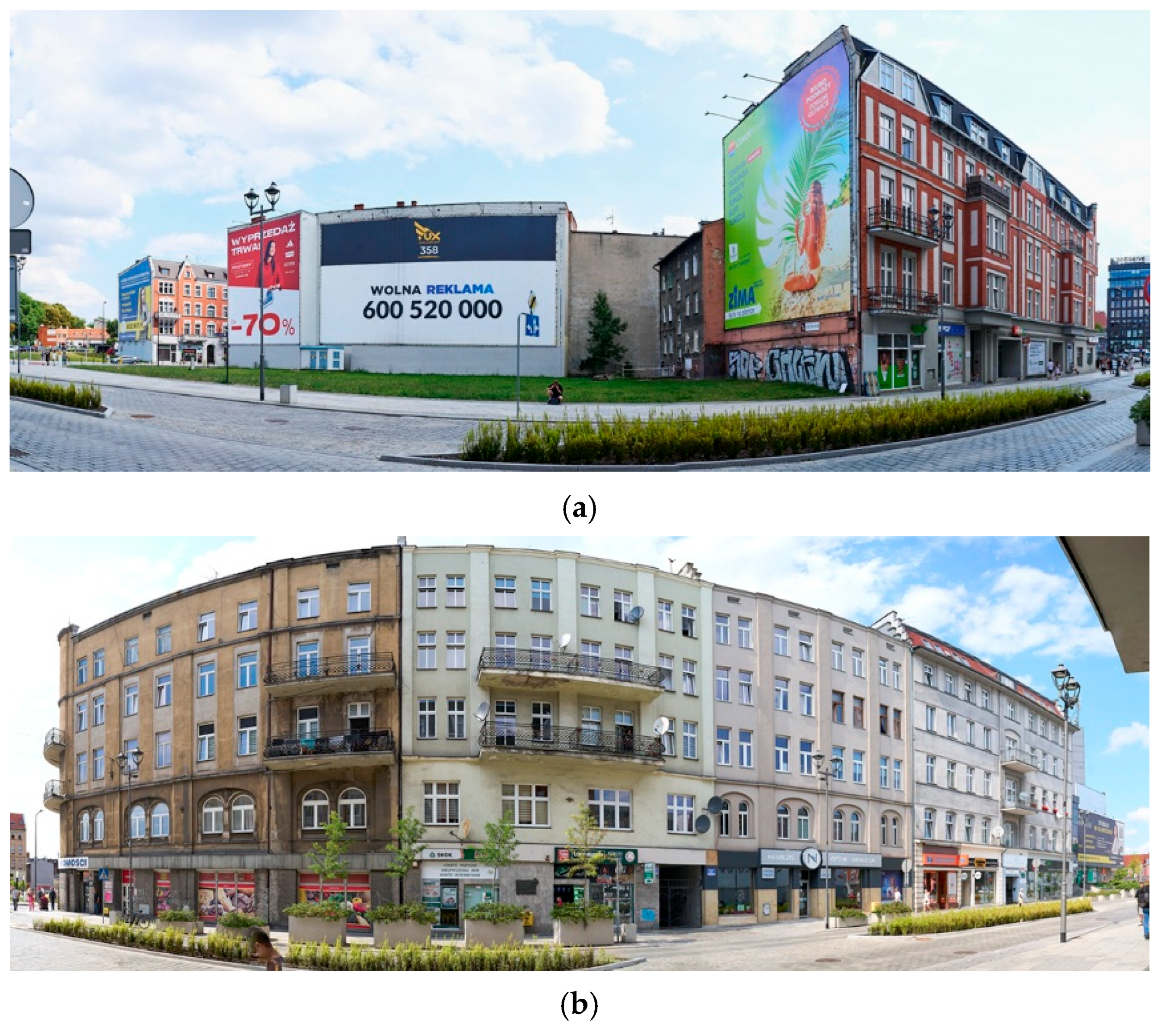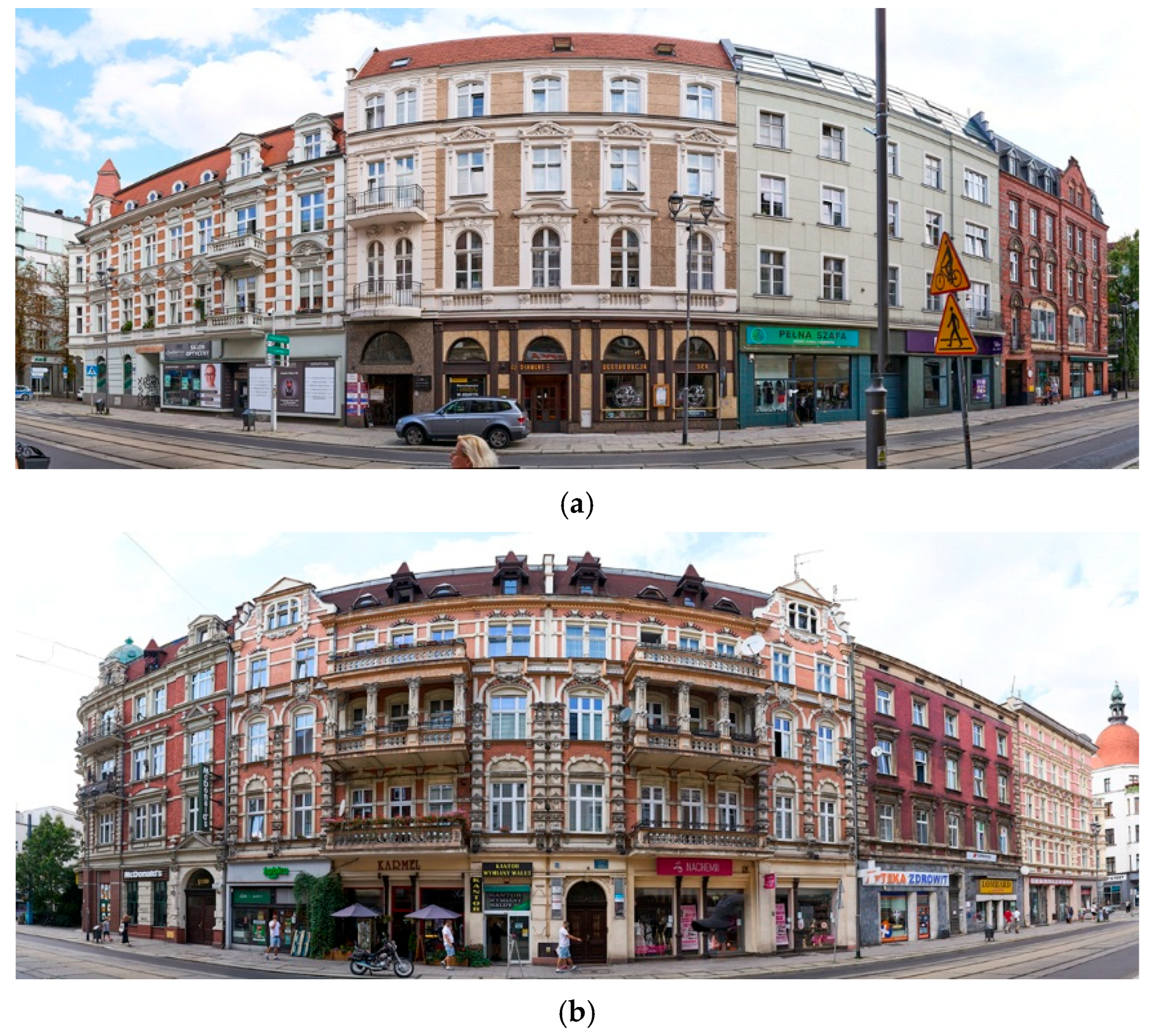 - Gachowski, M. Measuring Symbiosis and Synergy in the Urban Structure of Main Streets in Central Areas of the City as an Element of the Urban Design Method, Katowice. Archit. Civ. Eng. Environ. 2025, 18, 117–135. [Google Scholar] [CrossRef]