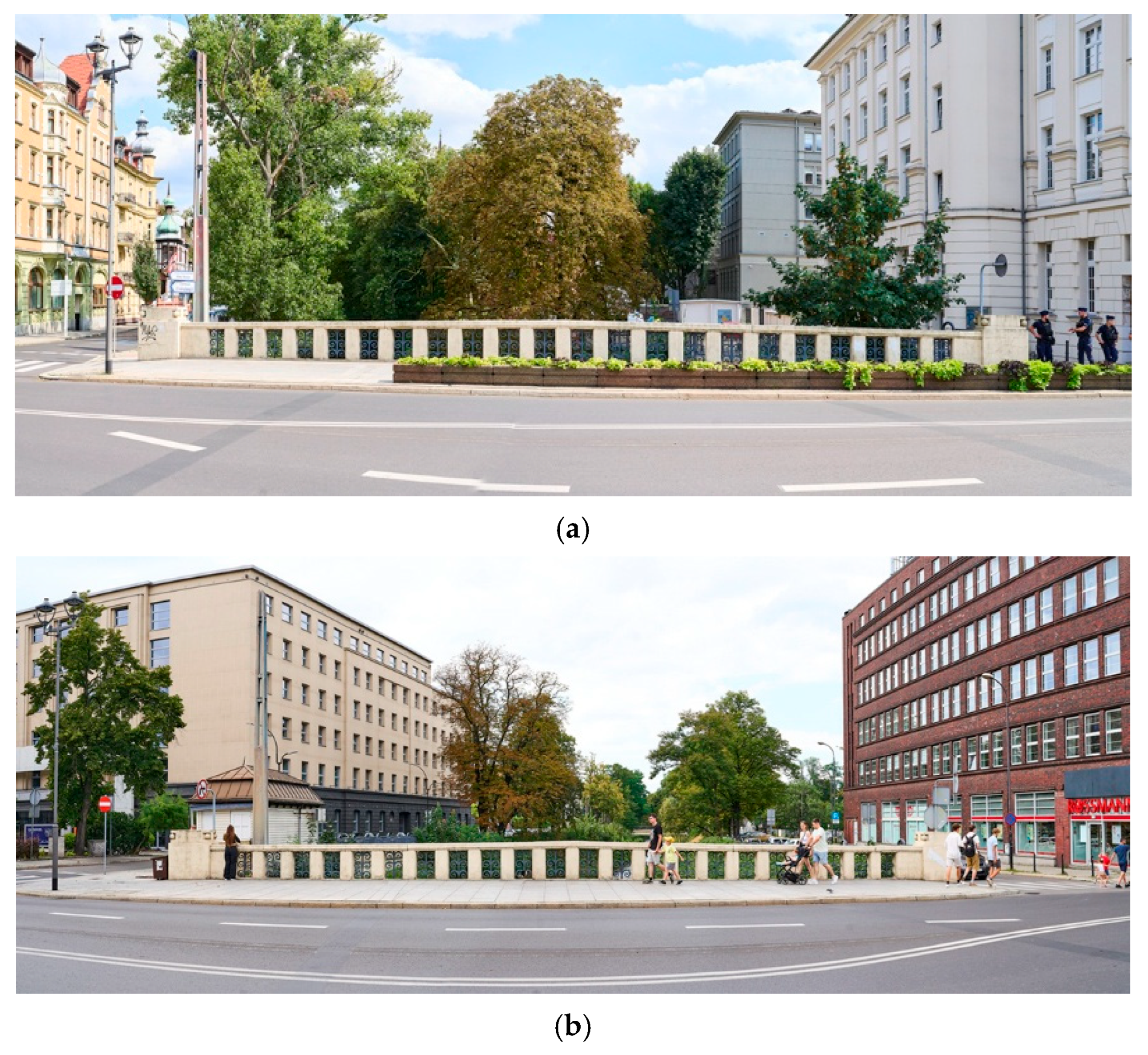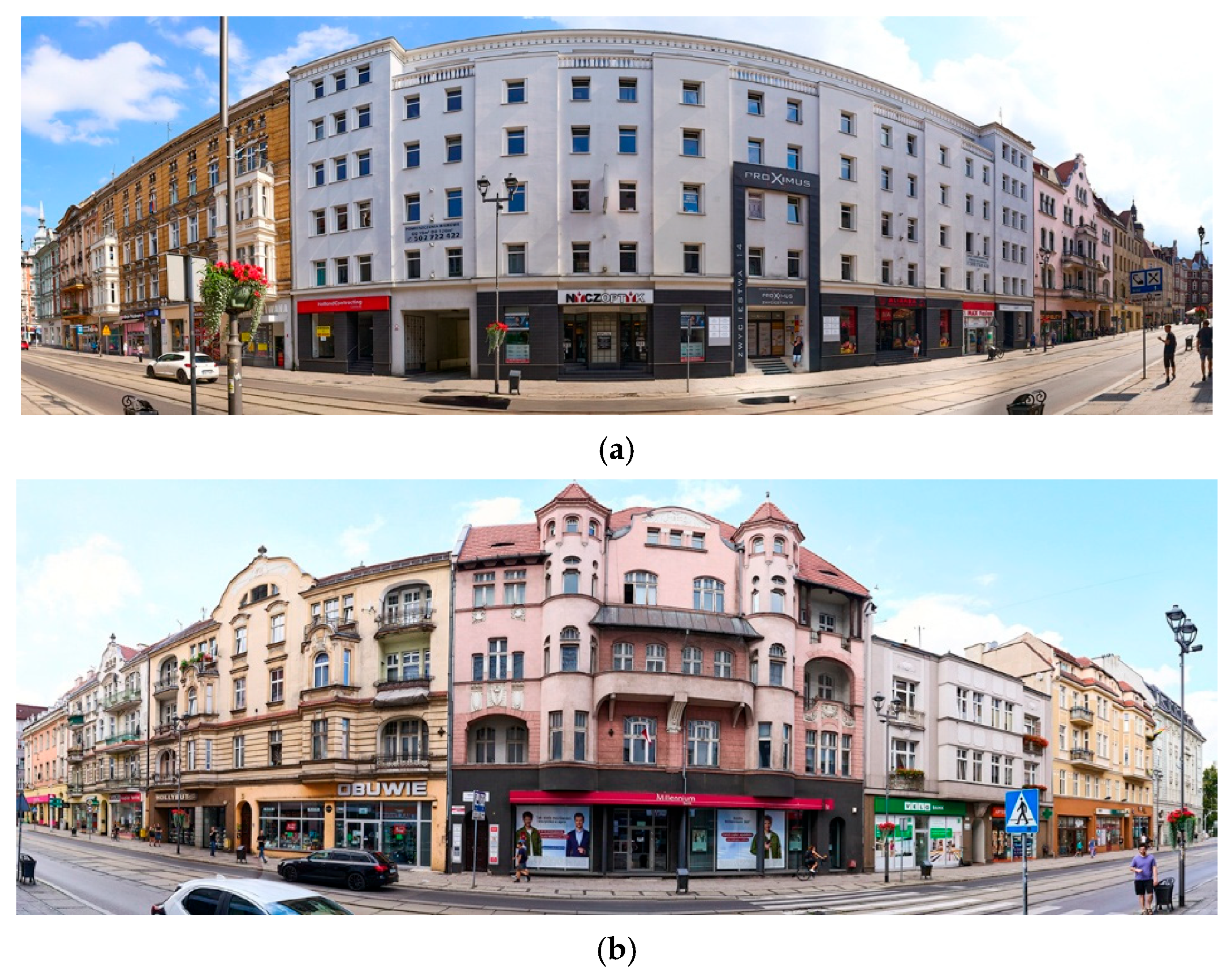 - Wikipedia. Ulica Zwycięstwa w Gliwicach. Wikipedia. Available online: https://pl.wikipedia.org/wiki/Ulica_Zwyci%C4%99stwa_w_Gliwicach (accessed on 4 February 2025).