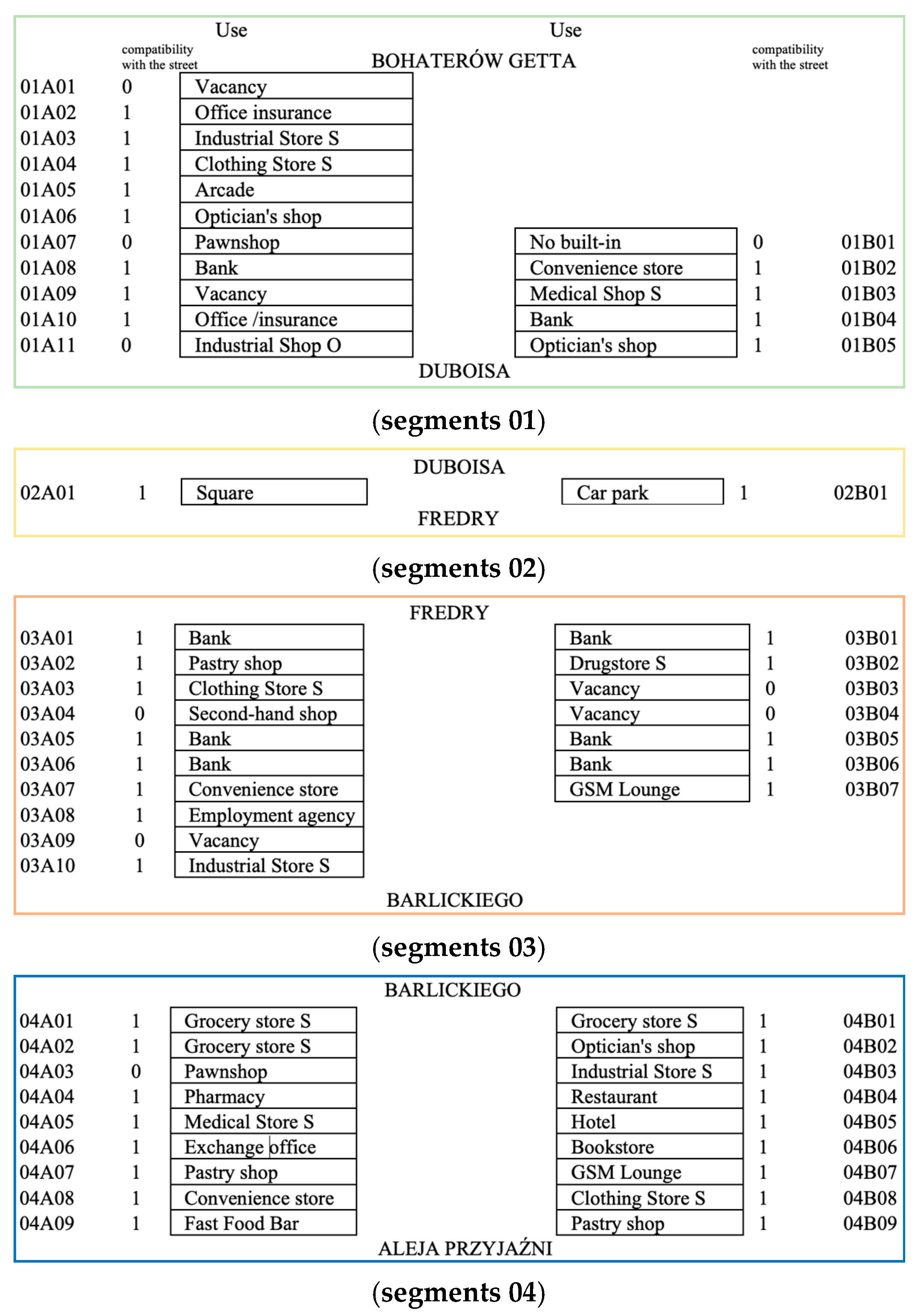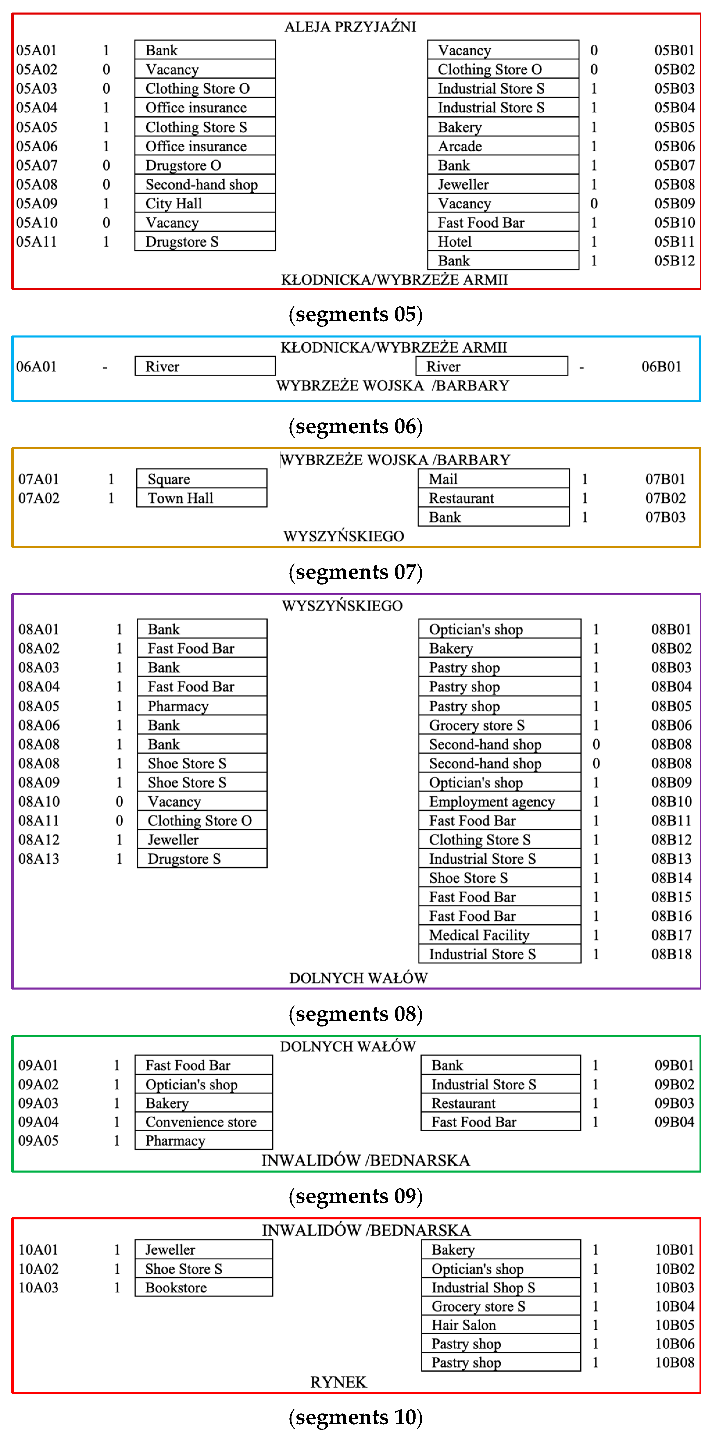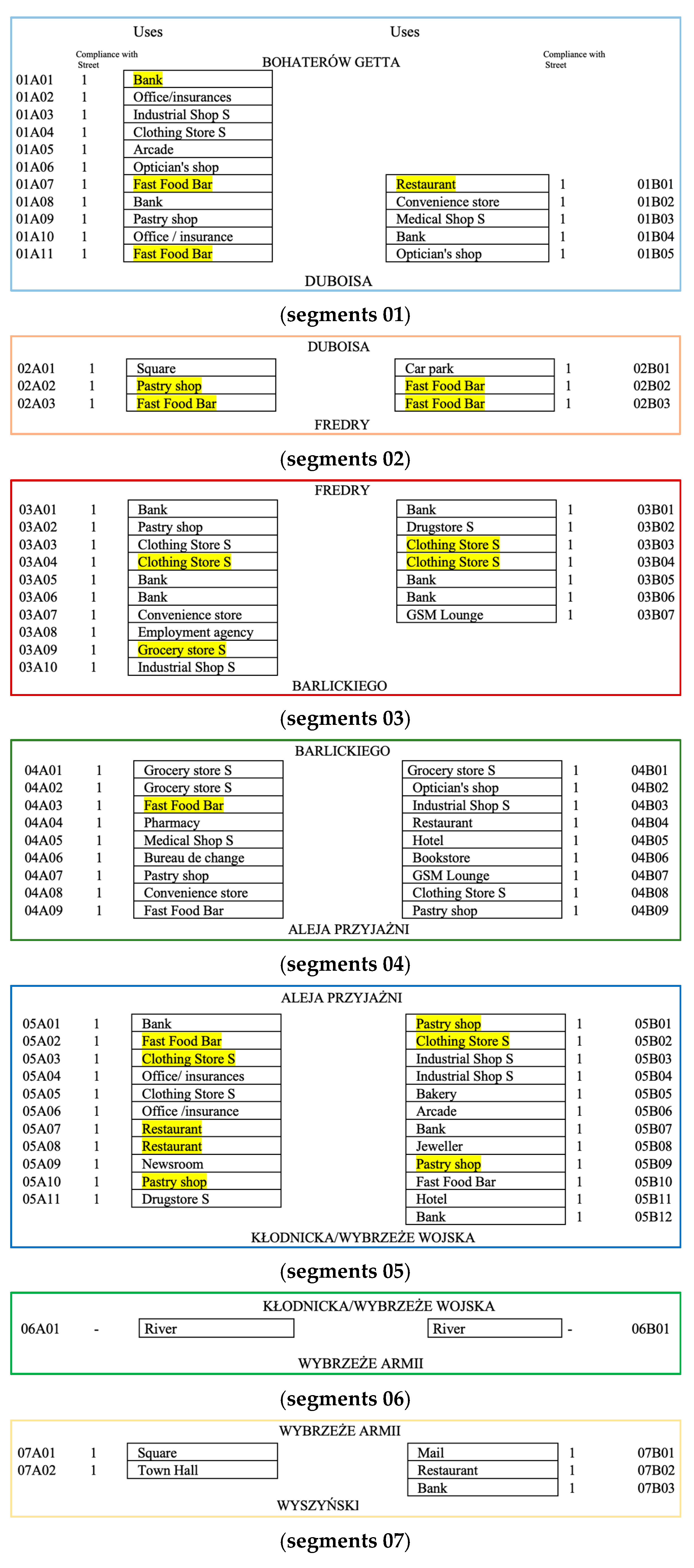 - the assessment of differences in symbiosis and synergy levels between adjacent segments of the main street.